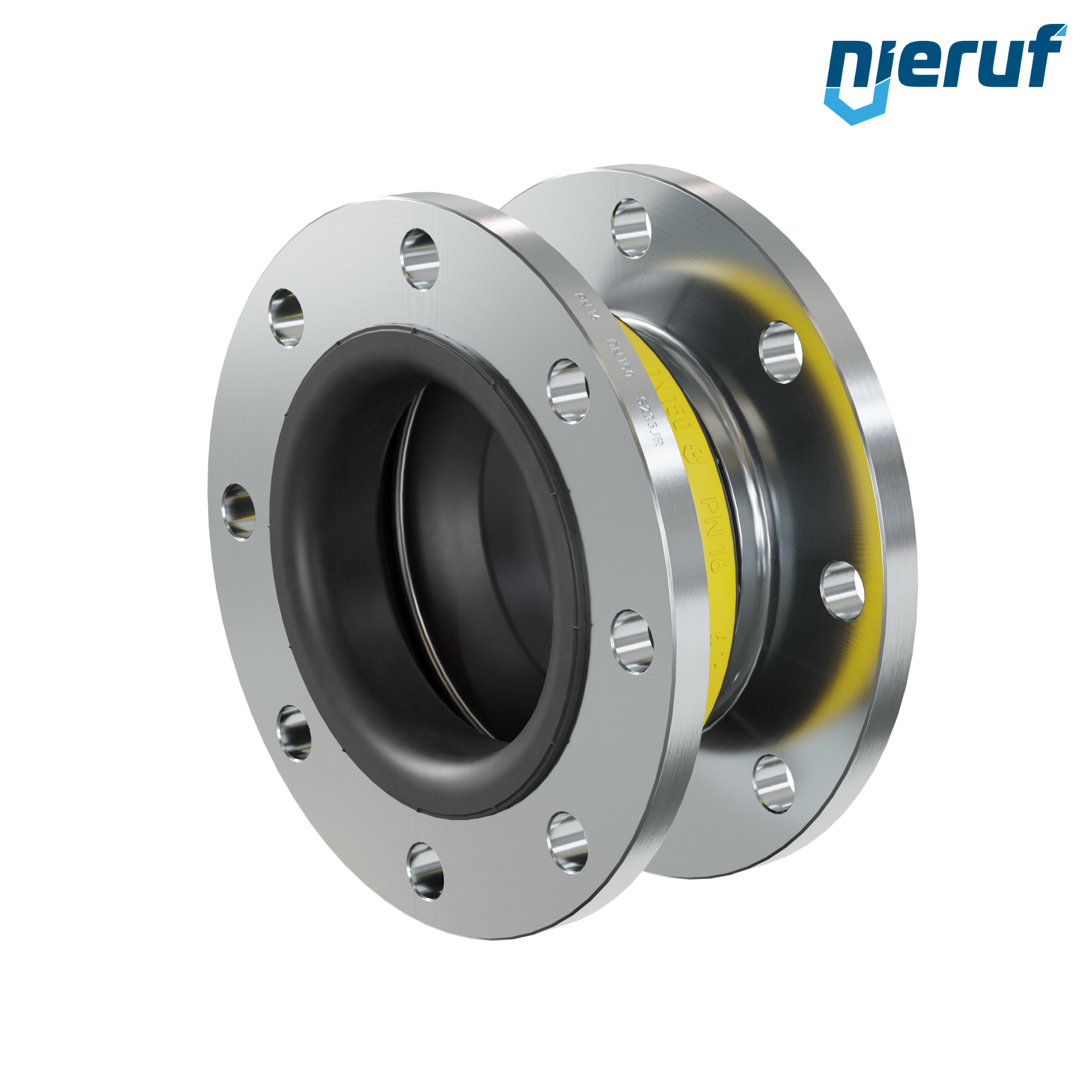 Hochwertiger Gummikompensator mit NBR Dichtung und Stahlflanschen. Zusätzlich ist dieser Kompensator mit Vakuumstützring für höhere Unterdrücke ausgestattet.