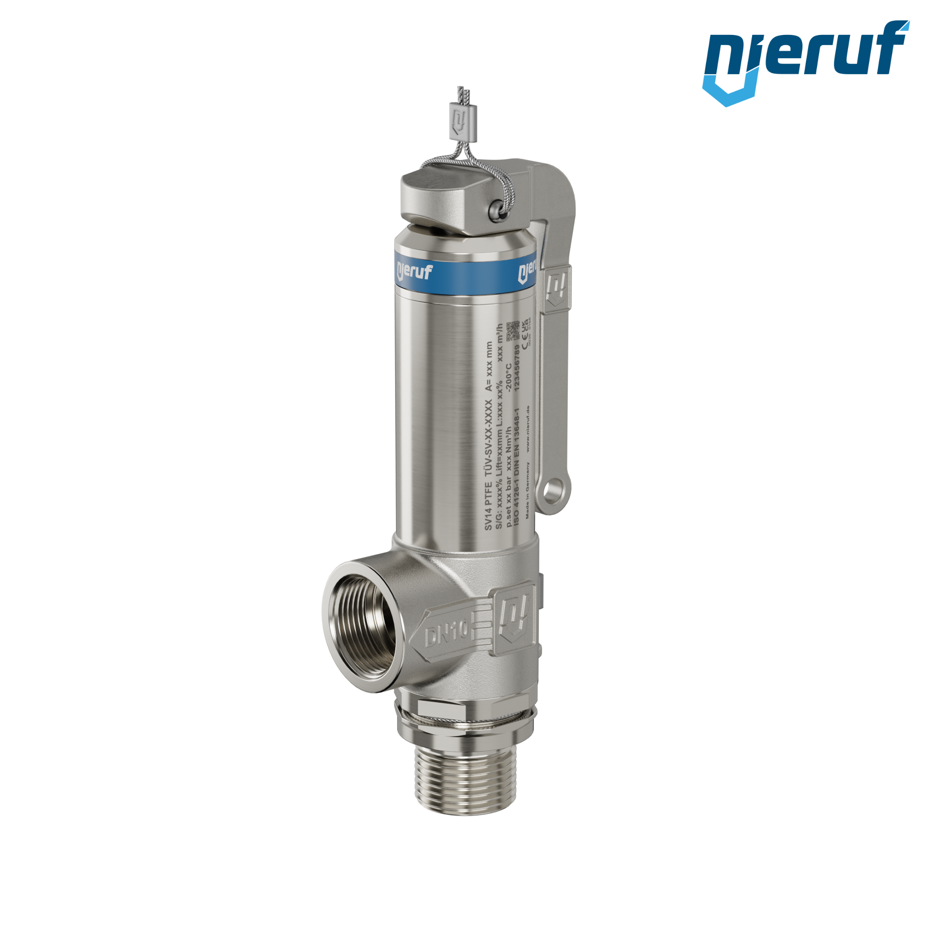 Kryo-Sicherheitsventil DN8 3/8" AG x 3/8" IG SV14 für tiefkalt verflüssigte Gase aus Edelstahl mit Anlüfthebel Dichtung PTFE Einstelldruck 0,2 - 70,0 bar