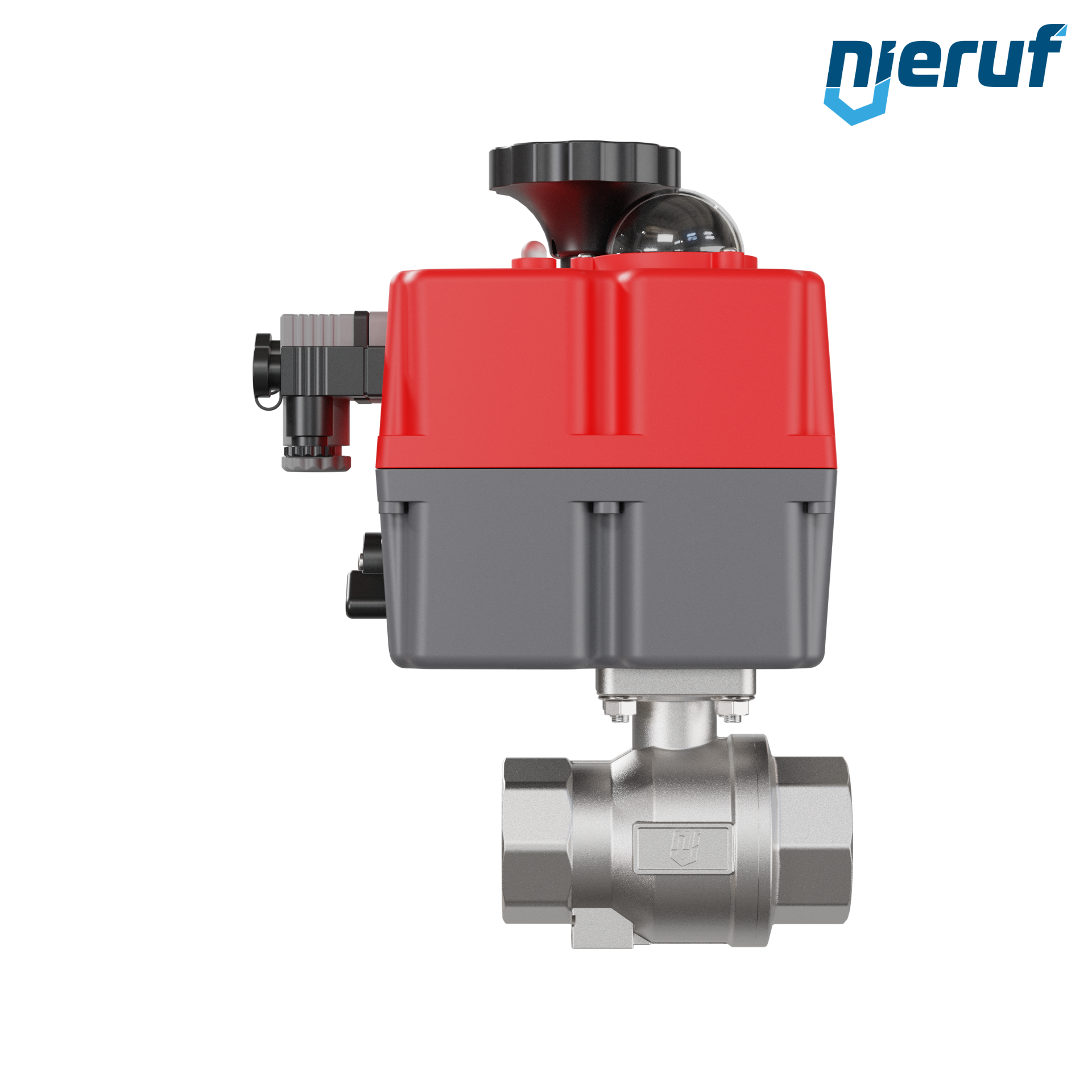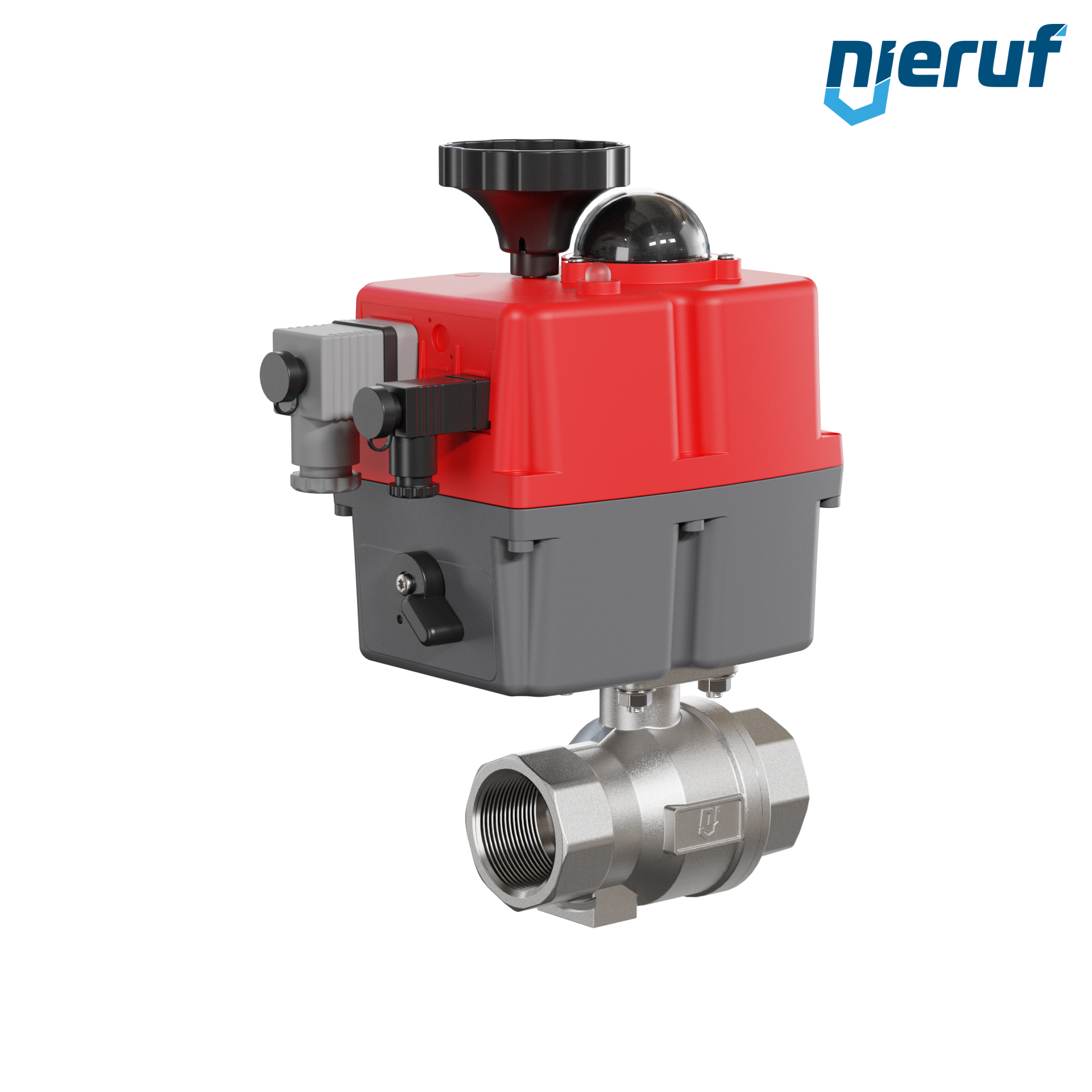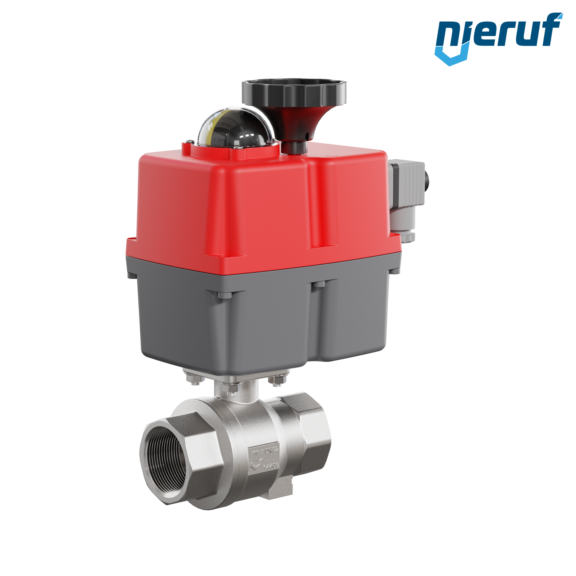 Dieser hoch qualitative Automatik-Muffenkugelhahn aus Edelstahl mit elektronischem Drehantrieb (Serie S) hat eine optische Stellungsanzeige und eine Handnotbetätigung.