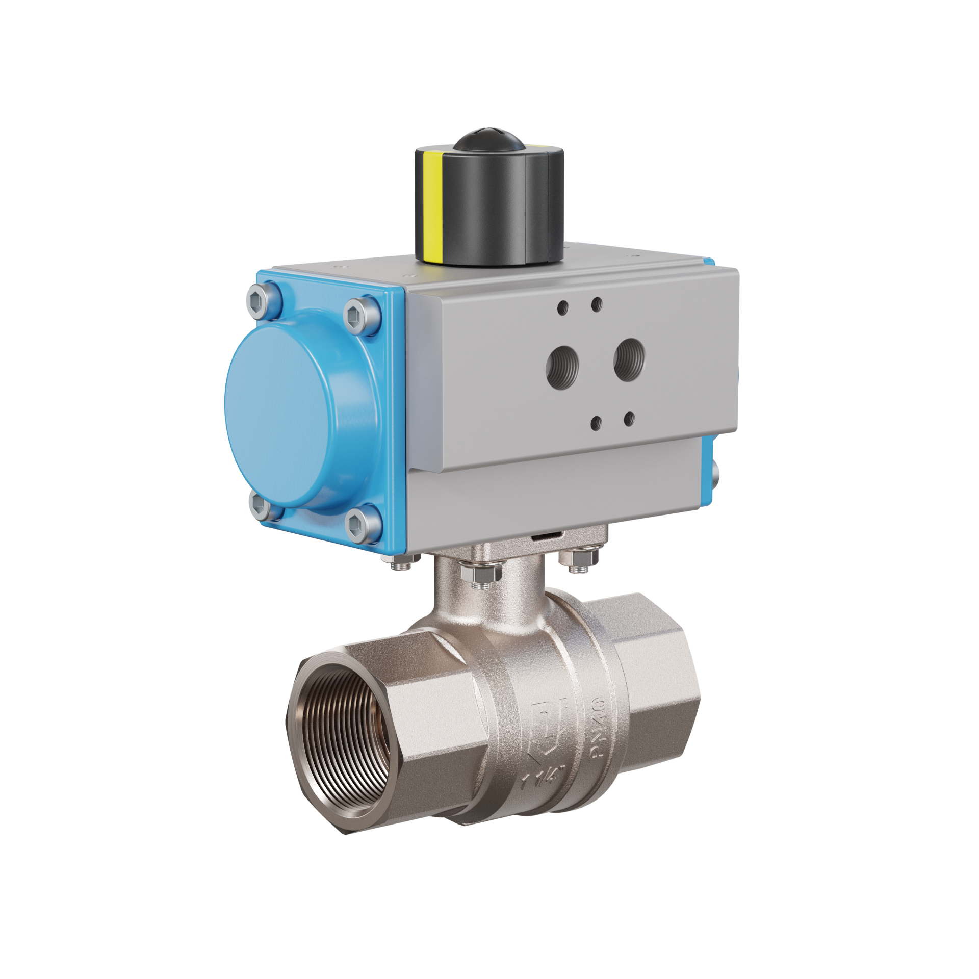 Automatik-Muffenkugelhahn DN32 - 1 1/4" Zoll pneumatischer Drehantrieb doppeltwirkend PK01