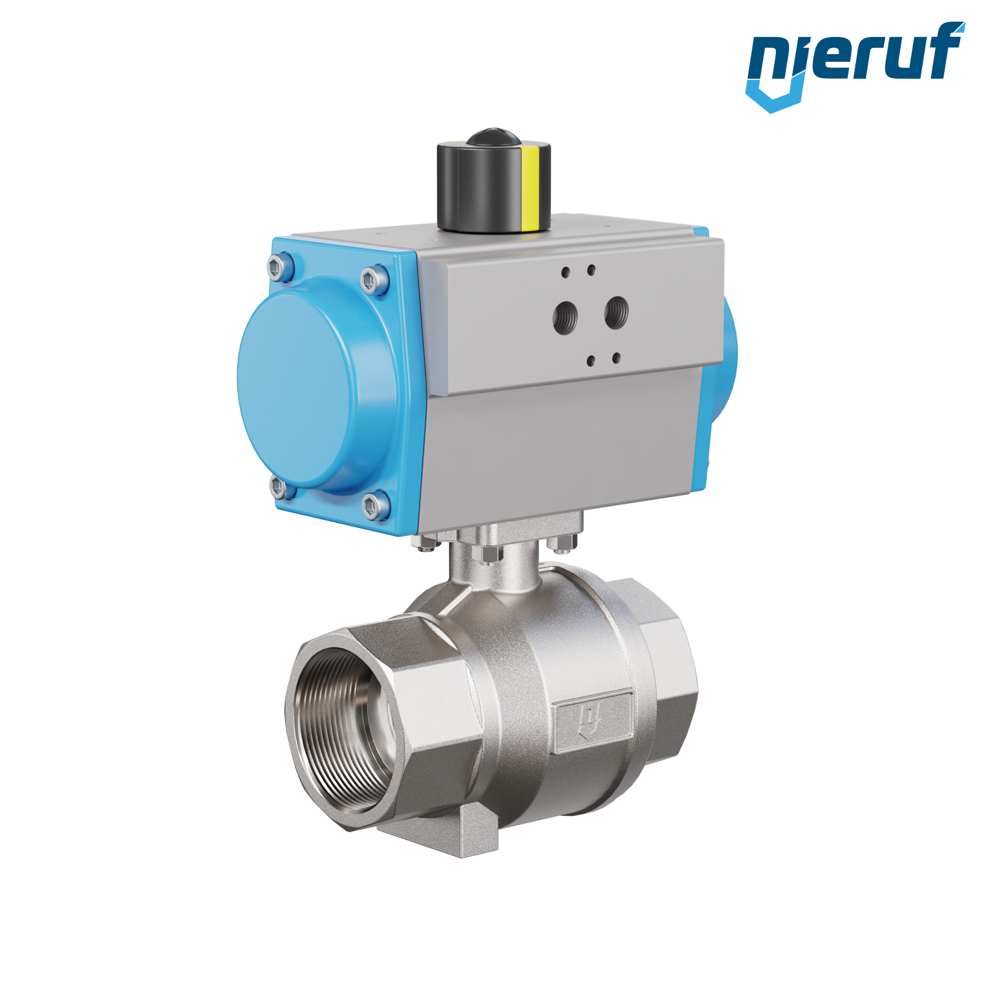 Pneumatischer-Kugelhahn DN50 - 2" Zoll Edelstahl 1.4408 PK02 pneumatischer Drehantrieb GS075 aus Aluminium (Wirkungsweise: GS = einfachwirkend)
