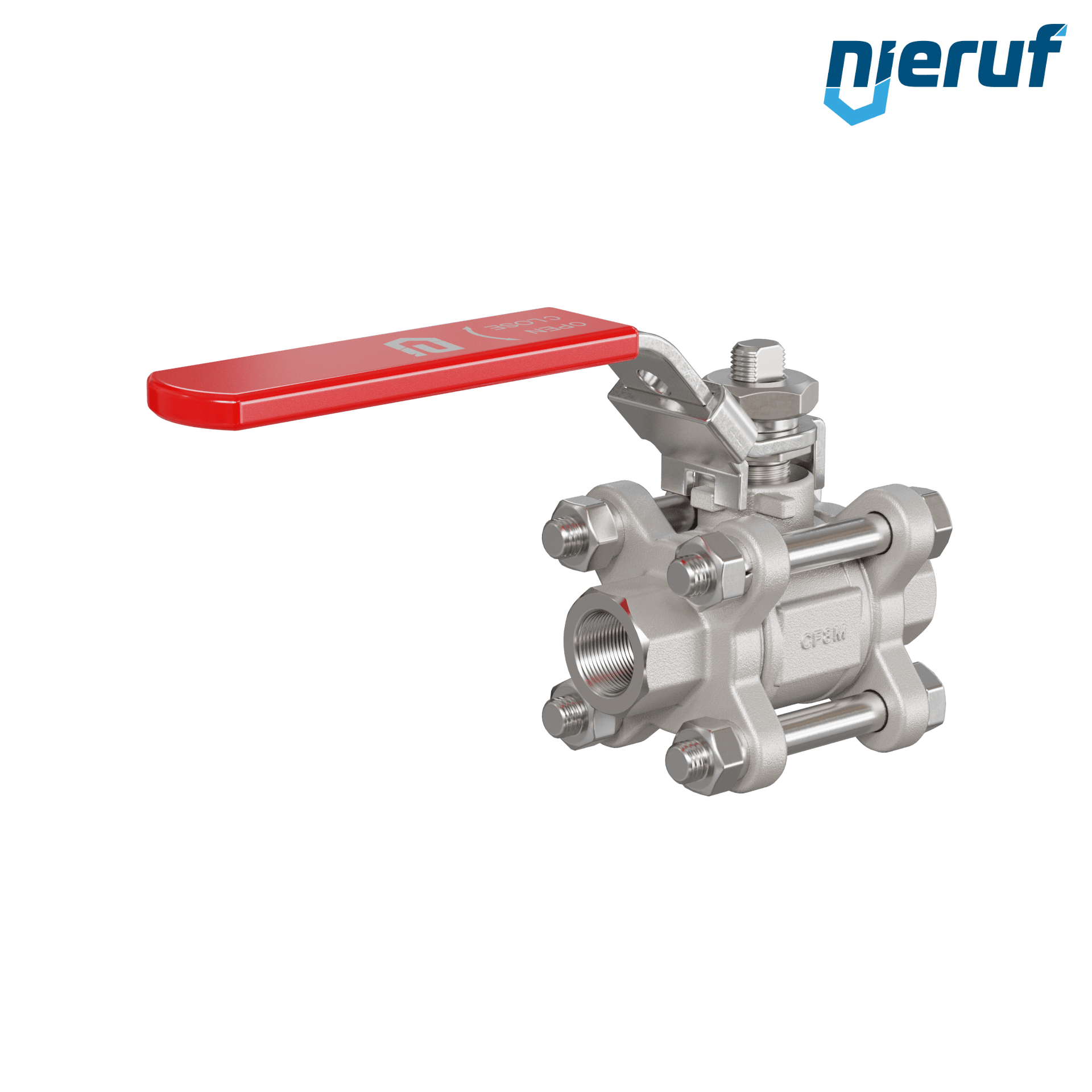 Dreiteiliger 2-Wege Kugelhahn aus Edelstahl 1.4408 DN8 - 1/4" Zoll Innengewinde NPT für flüssige und gasförmige Medien