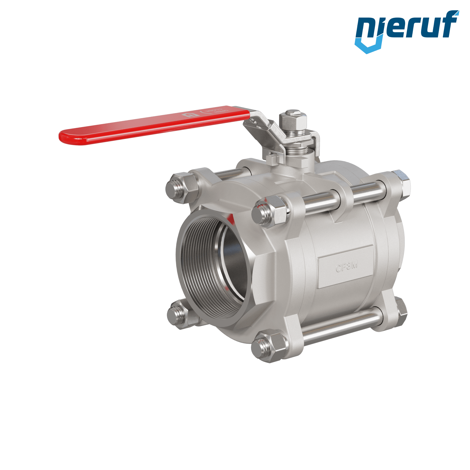 Dreiteiliger 2-Wege Kugelhahn aus Edelstahl 1.4408 DN80 - 3" Zoll Innengewinde für flüssige & gasförmige Medien