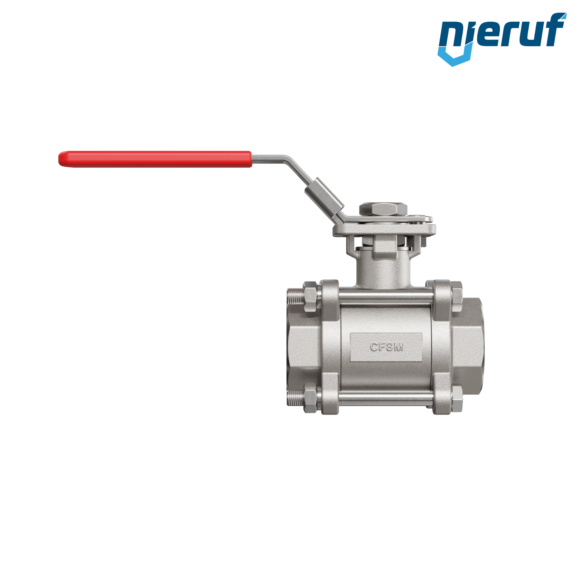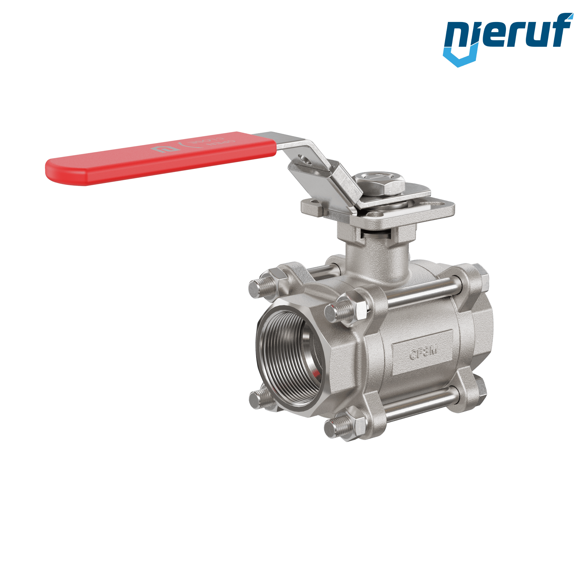 Dreiteiliger 2-Wege Kugelhahn GK20 mit ISO 5211 Montageflansch aus Edelstahl 1.4408 DN32 - 1 1/4" Zoll Innengewinde NPT für flüssige und gasförmige Medien