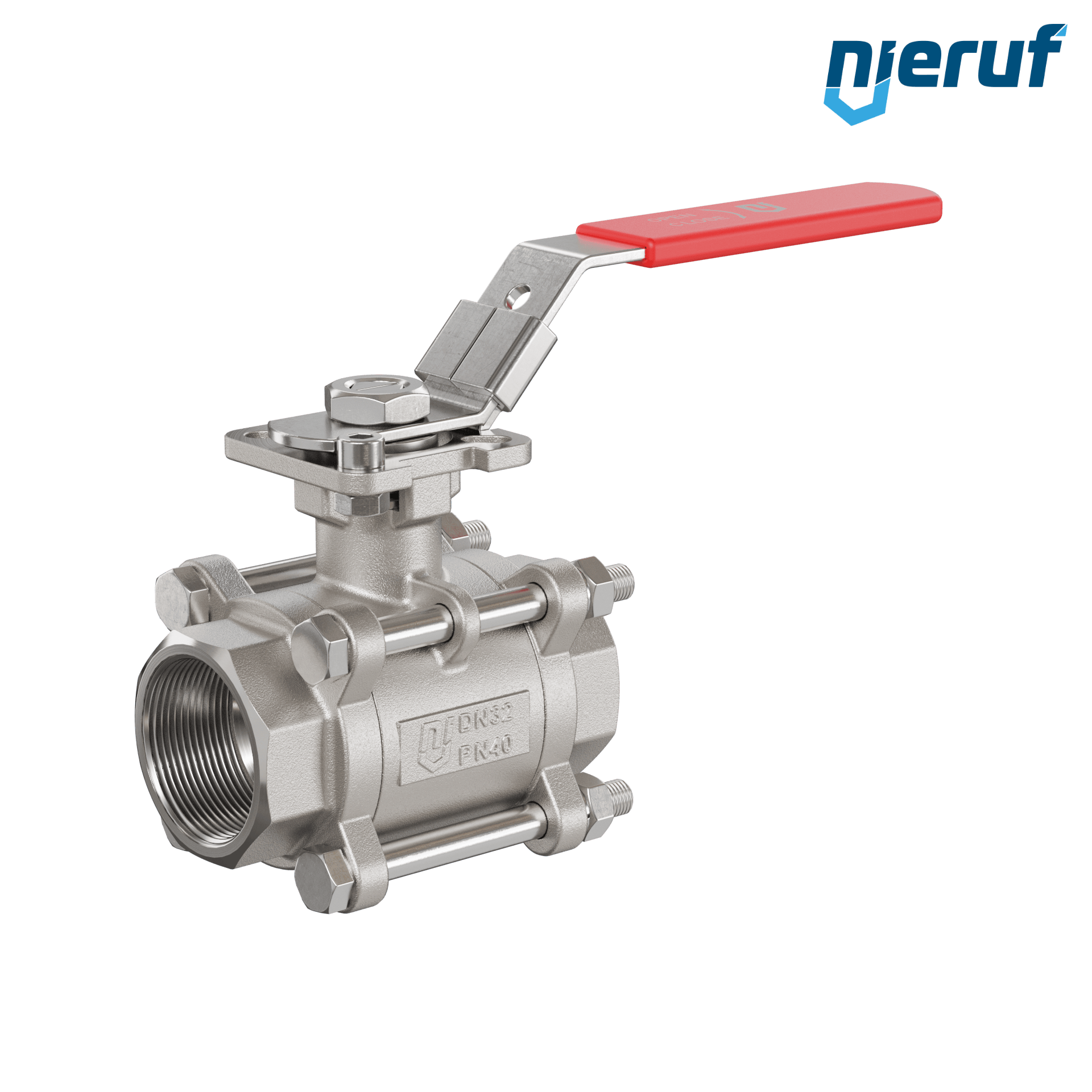 Dreiteiliger Edelstahl-Kugelhahn GK20 mit ISO 5211 Montageflansch DN32 - 1 1/4" Zoll Innengewinde NPT
