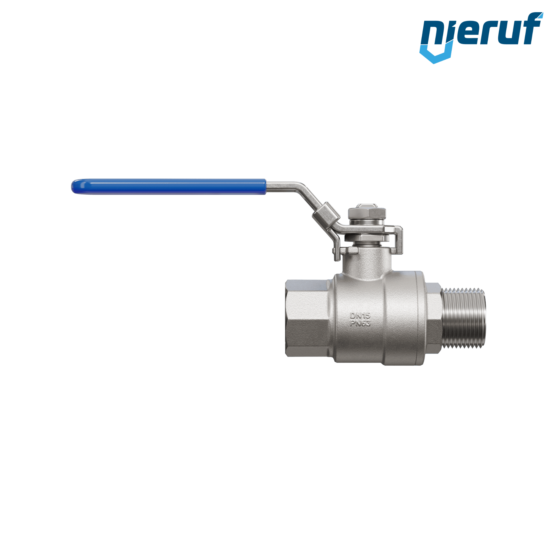 | Antrieb | Hebelgriff aus Edelstahl mit blauer Kunststoffummantelung |
