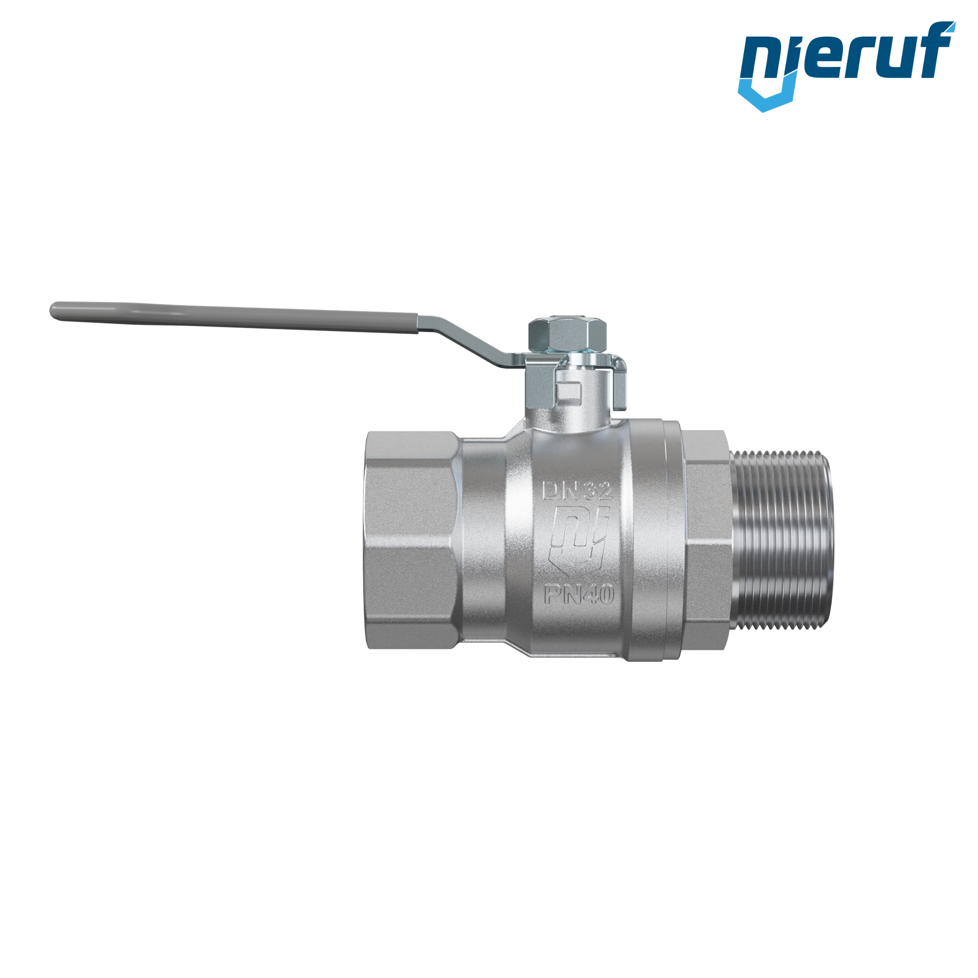 Messing-Kugelhahn DN32 - 1 1/4" Zoll Innen-/Aussengewinde voller Durchgang Dichtungen aus 2xO-Ring FKM für flüssige & gasförmige Medien