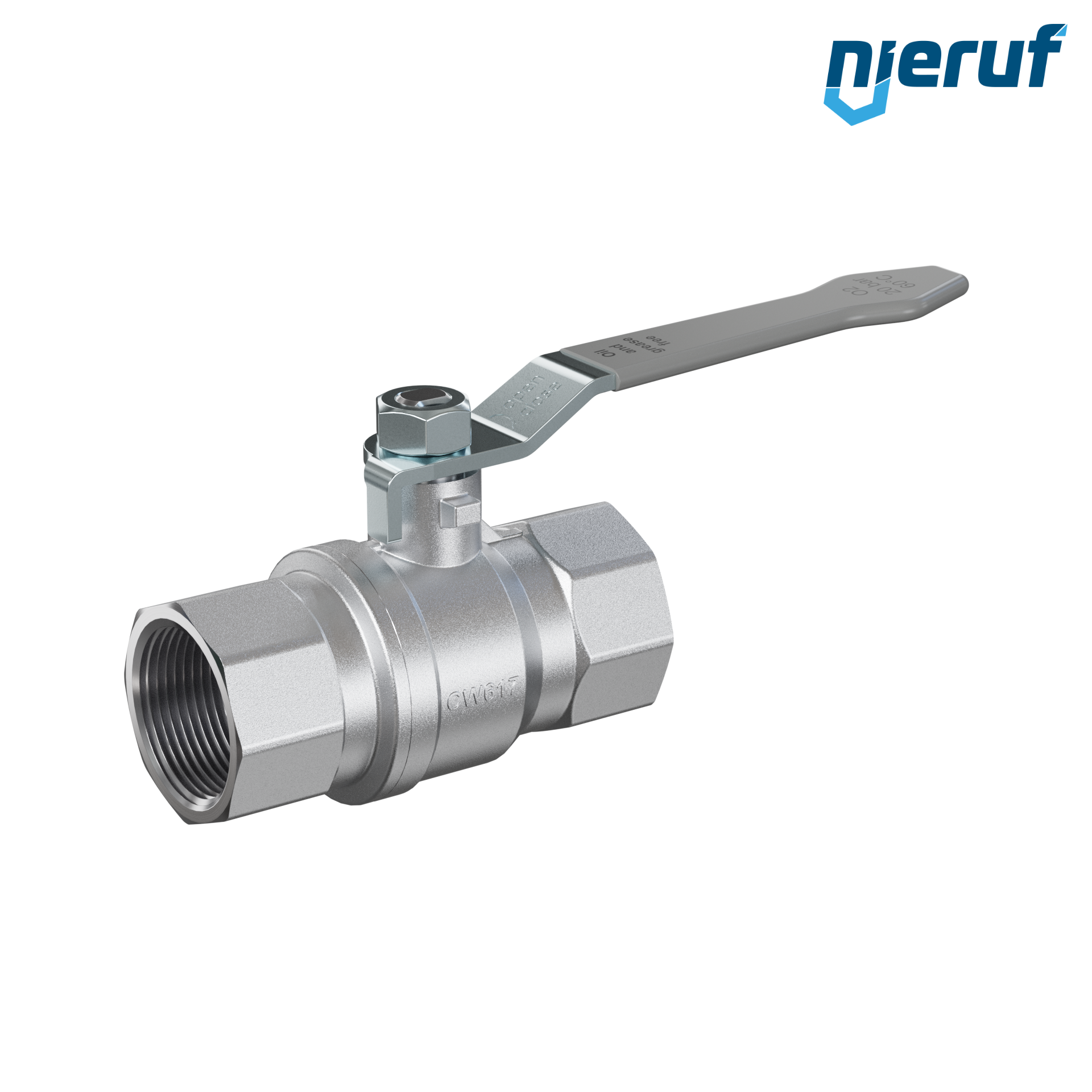 Sauerstoff-Kugelhahn GK02 mit Innengewinde DN25 - 1" Zoll voller Durchgang, Dichtungen aus PTFE, Maximaler Druck 20 bar