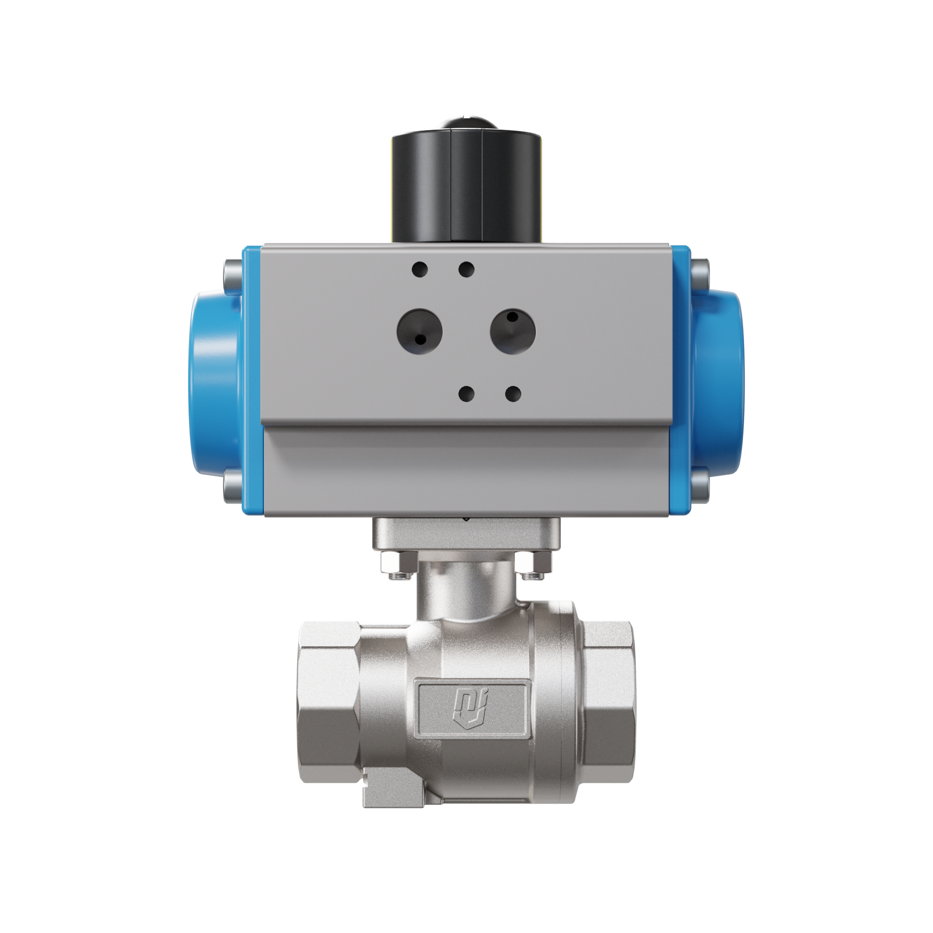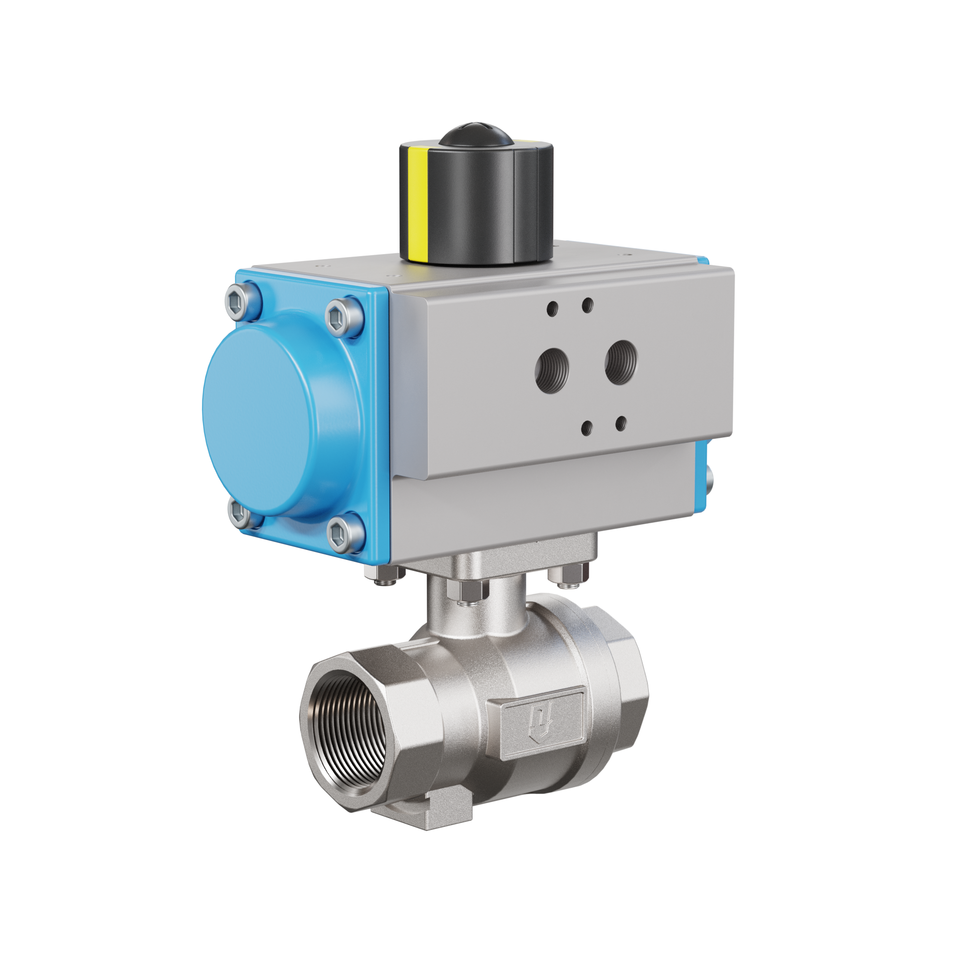 Trinkwasser-Kugelhahn pneumatisch DN25 - 1" Zoll Drehantrieb doppeltwirkend PK02