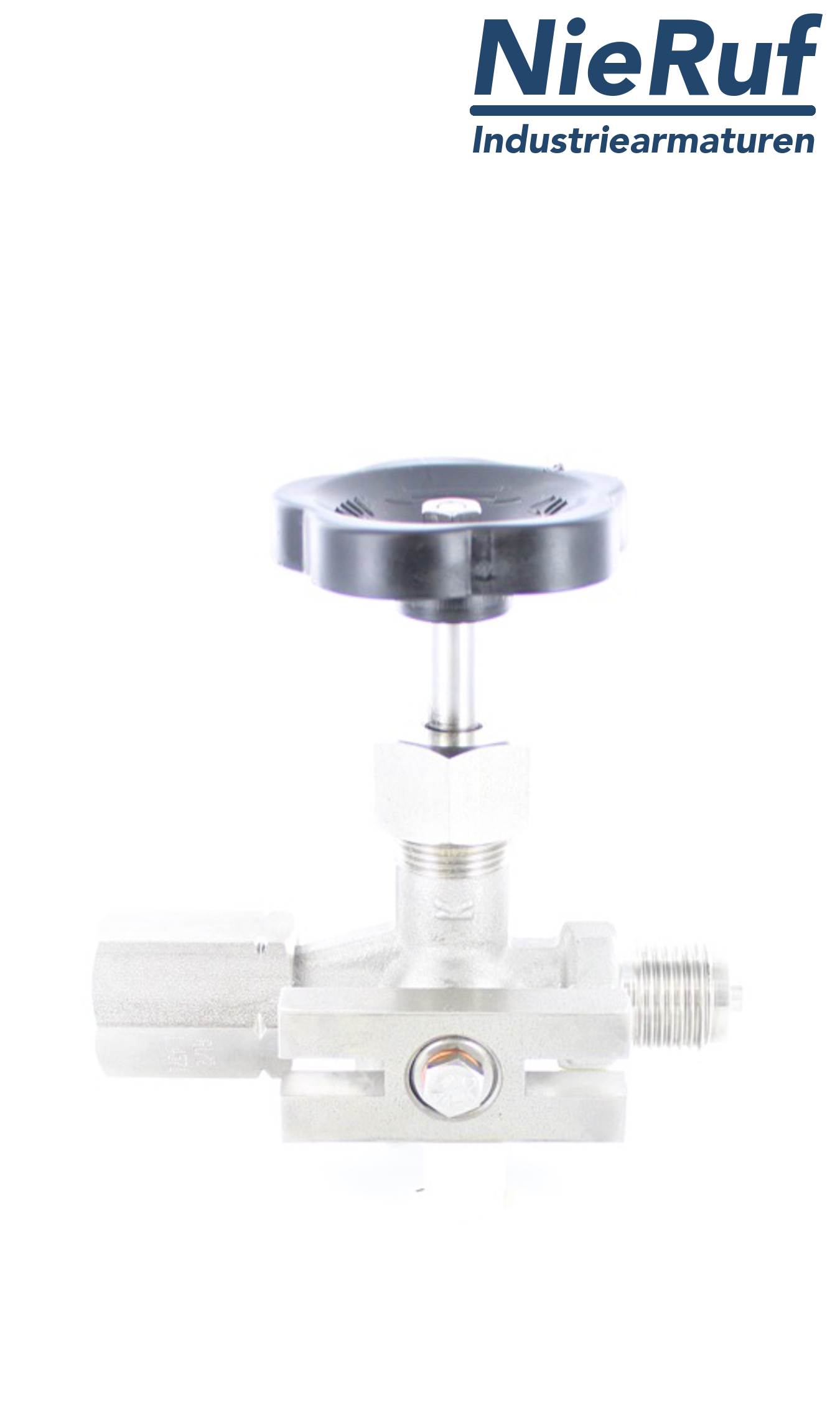 Manometerabsperrventil 1/2" Zapfen x Spannmuffe x Prüfflansch 60x25 mm DIN 16271 Edelstahl 1.4571 400 bar