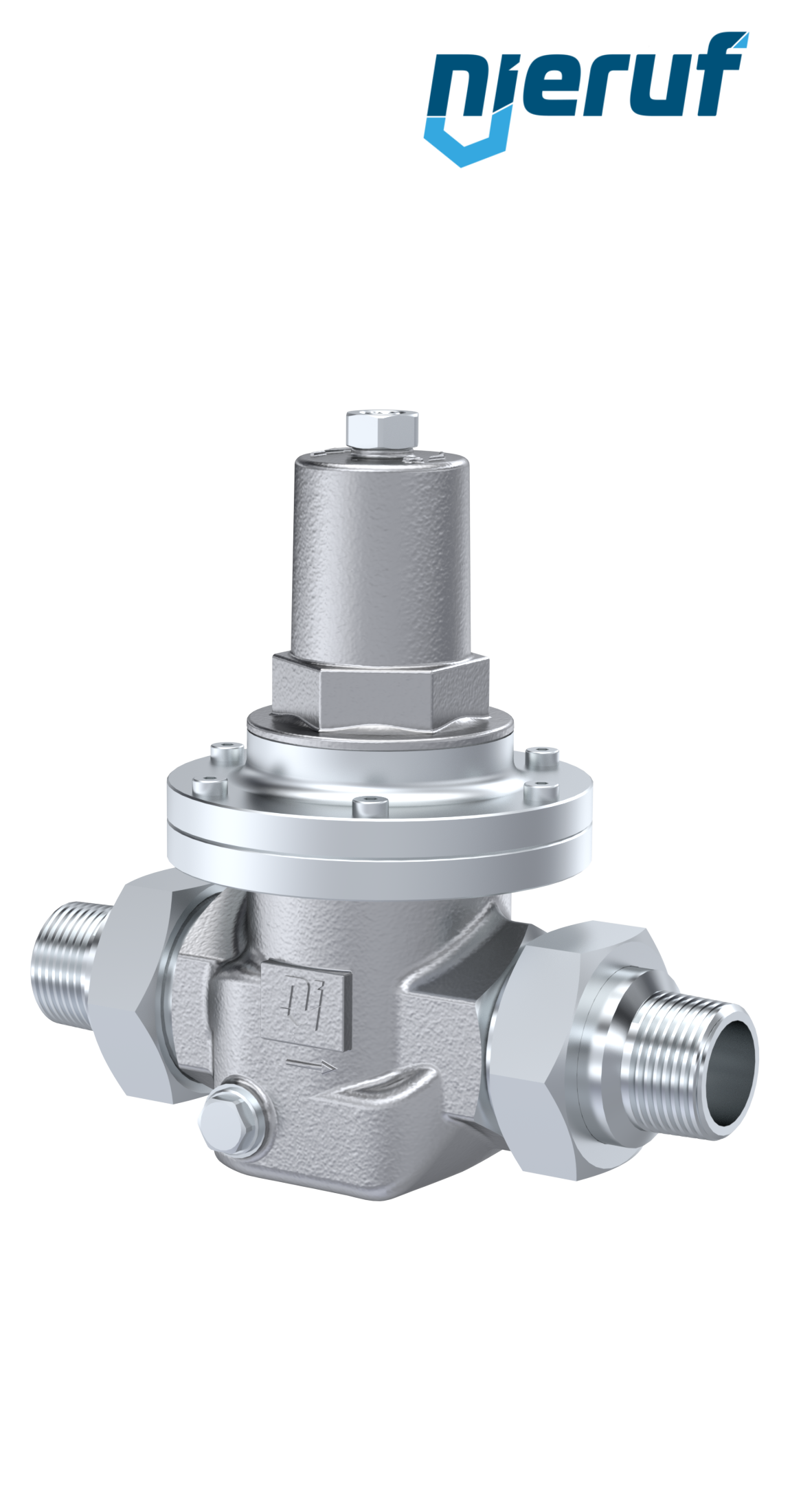 Niederdruck-Druckminderer 1 1/4" Zoll mit Außengewinde ISO 7 / BSP-T aus Edelstahl Dichtung FPM / FKM für flüssige & neutrale gasförmige Medien, Einstelldruck 0,2 - 2,0 bar
