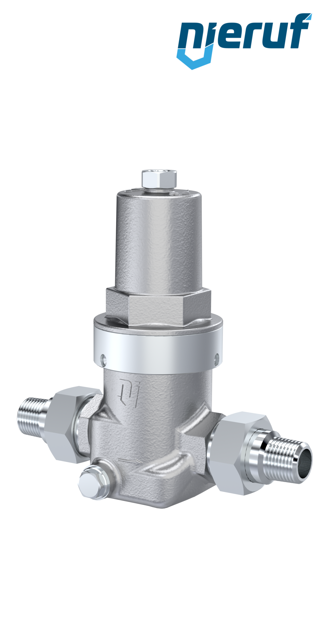 Niederdruck-Druckminderer 3/4" Zoll mit Außengewinde ISO 7 / BSP-T aus Edelstahl Dichtung FPM / FKM für flüssige & neutrale gasförmige Medien, Einstelldruck 0,2 - 2,0 bar