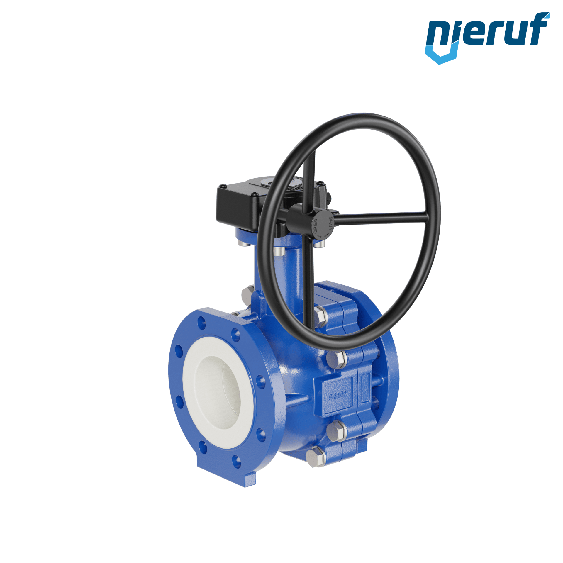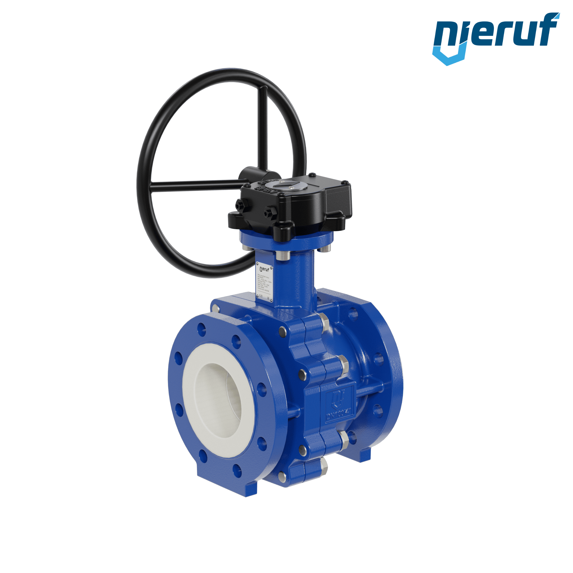 PFA-Flanschkugelhahn FK13 DN100 - 4" Zoll ANSI 150 aus Sphäroguss mit Handgetriebe