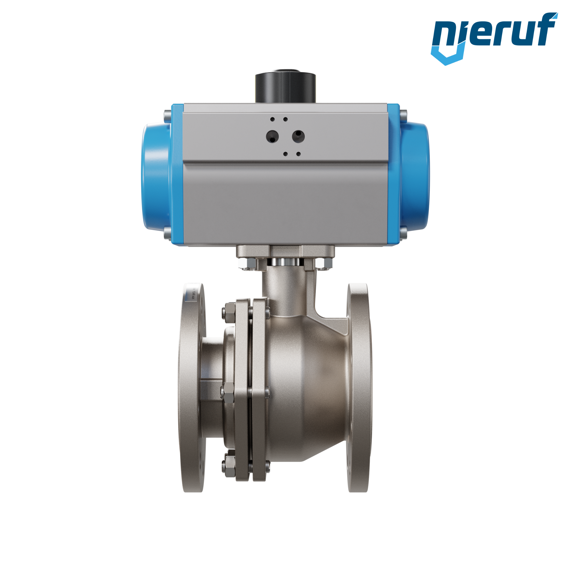 Flanschkugelhahn DN80 Edelstahl 1.4408 PK05 pneumatischer Drehantrieb GD105 aus Aluminium (Wirkungsweise: GD = doppeltwirkend)
