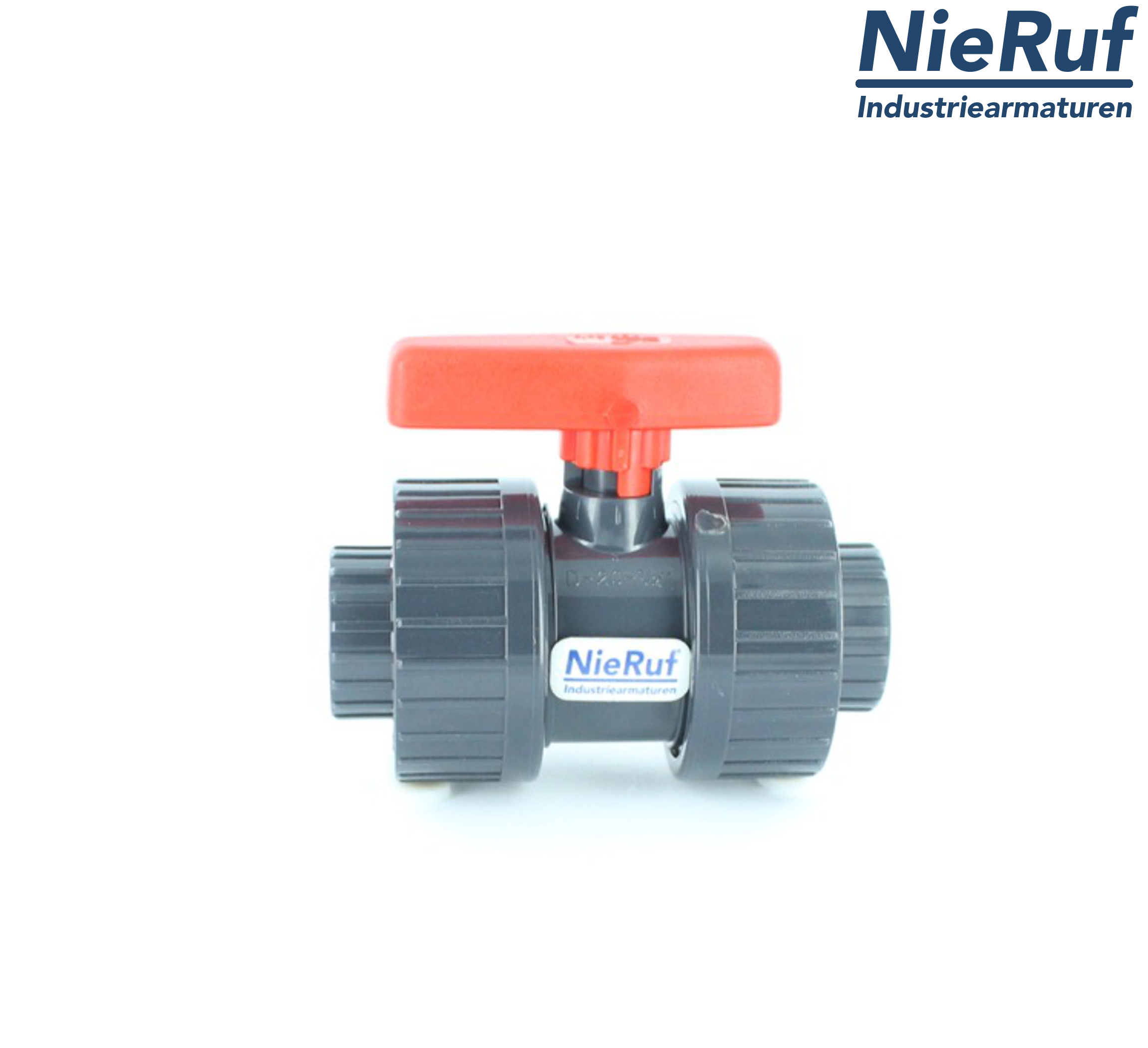 PVC-Kugelhahn d 25 PVC-U KK01 Dichtung: Hytrel/EPDM Handhebel mit zwei Verschraubungen für flüssige & gasförmige Medien