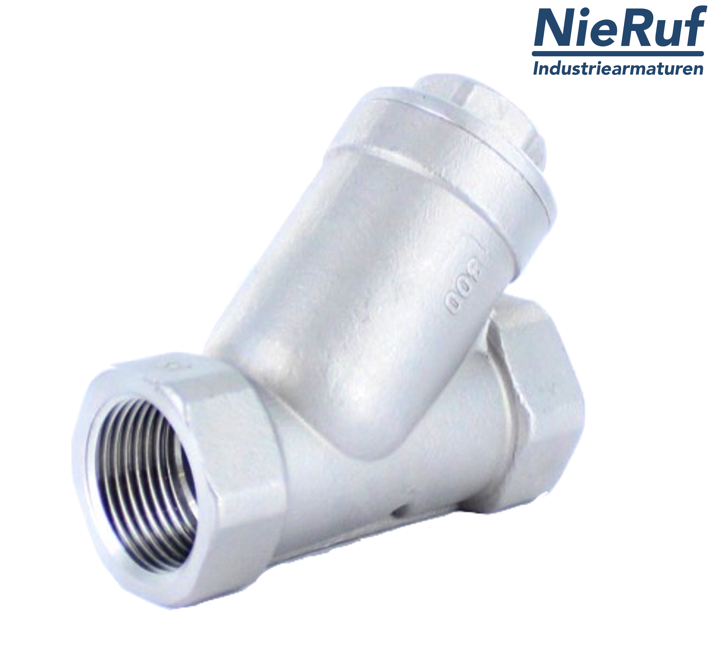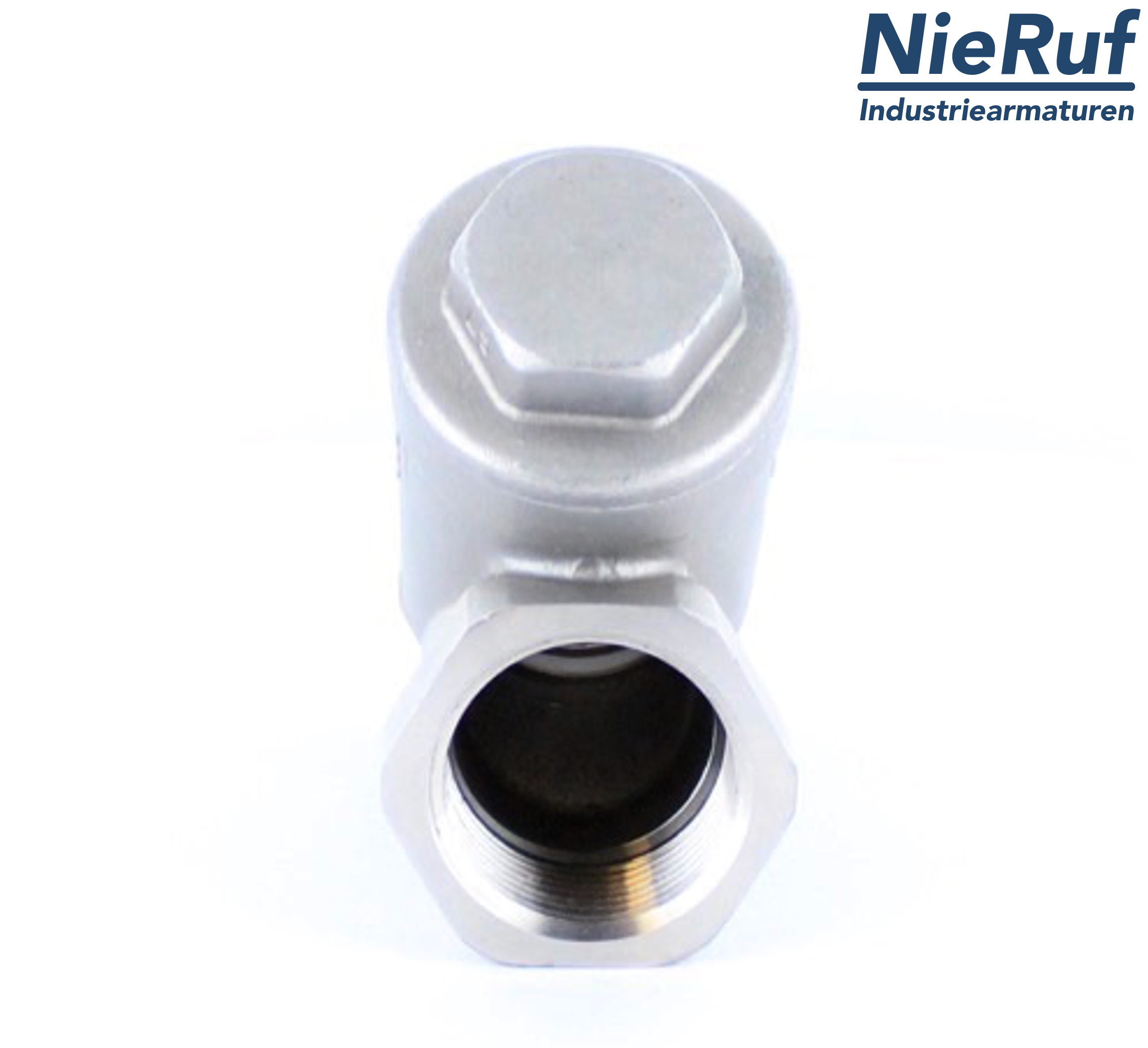 Schrägsitz - Rückschlagventil DN15 - 1/2" Zoll aus Edelstahl 1.4408 Dichtung aus Metall für flüssige und gasförmige Medien
