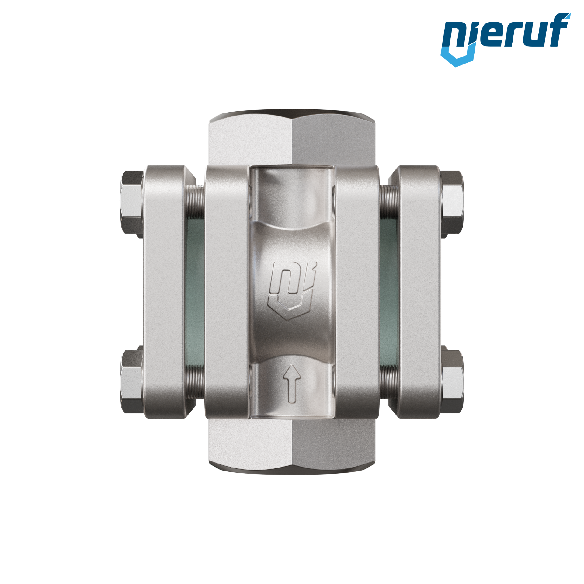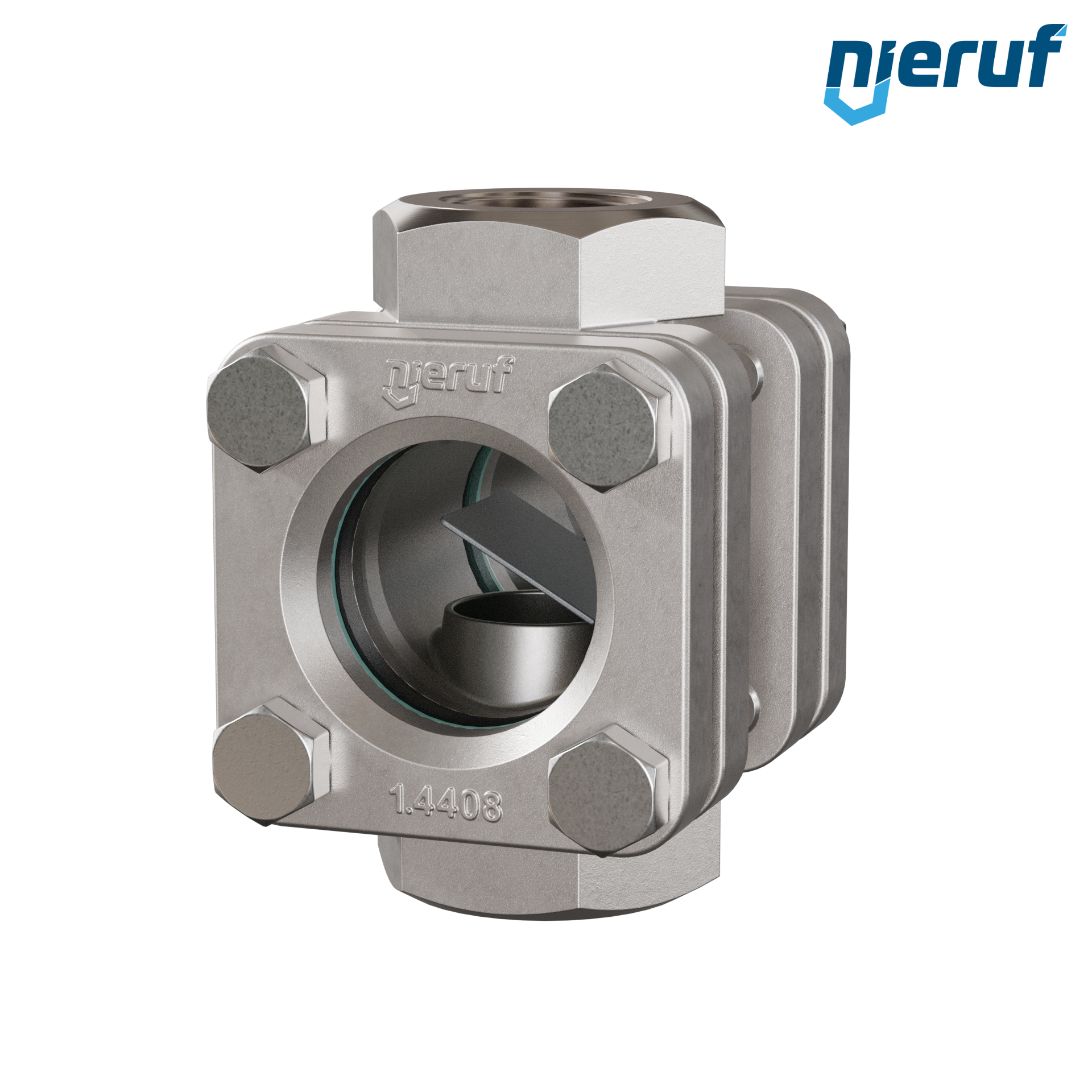 Durchfluss-Schauglas 1 1/2" Version mit Klappe Typ GS03 Borosilikatglas Graphit max 16 bar
