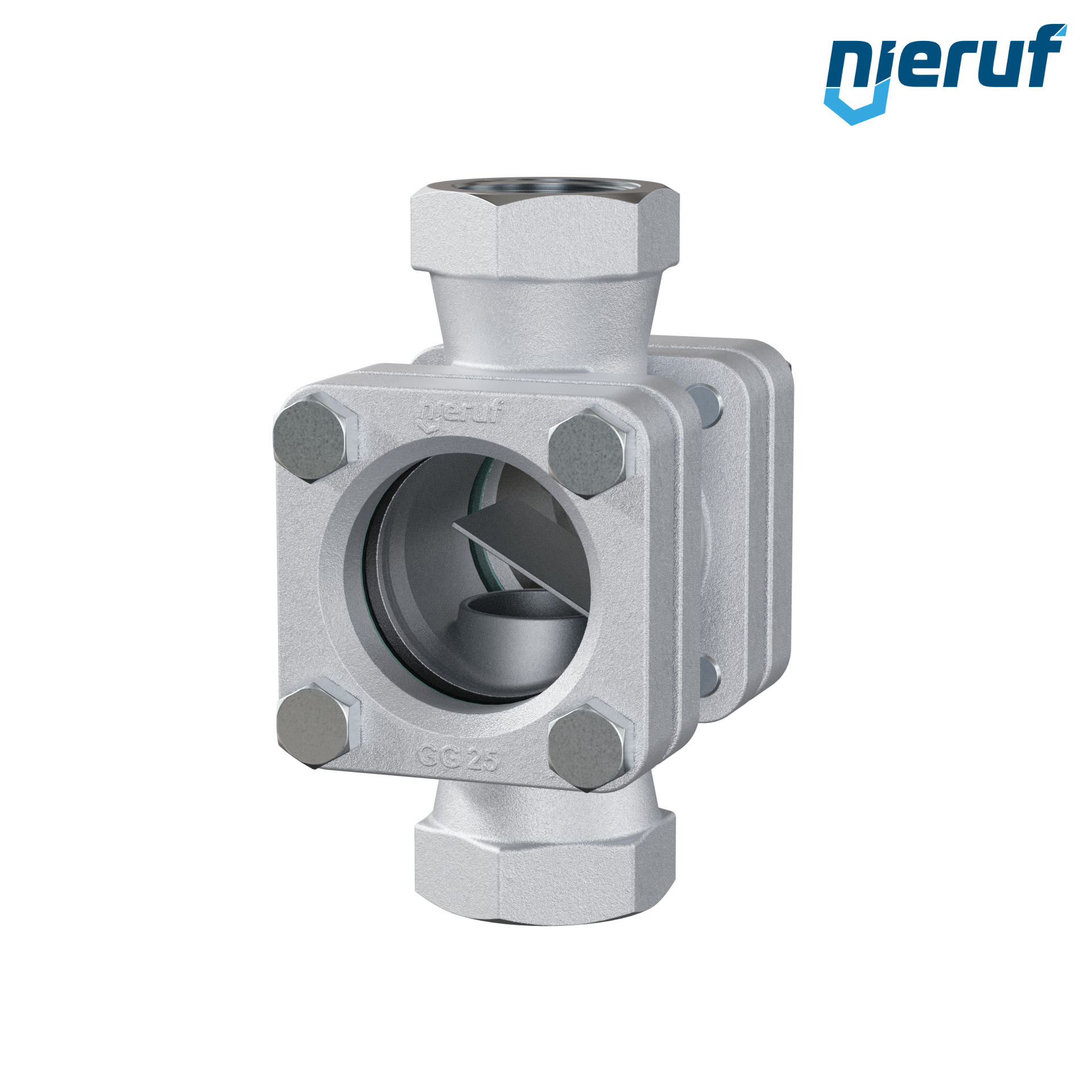 Gewinde Schauglas DN50 - 2" Zoll Grauguss GG25 Typ GS01 Natron-Kalk-Glas Graphit max 16 bar Version mit Klappe