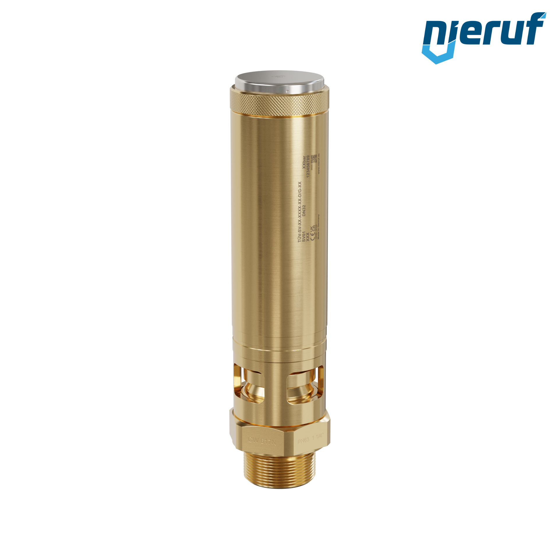 Sicherheitsventil 1 1/4" AG Typ SV01 freiabblasend für Druckluft & Pneumatikanwendungen, aus Messing mit FKM Dichtung, Einstelldruck 0,2 - 25,0 bar- höhere Drücke in PTFE Ausführung möglich
