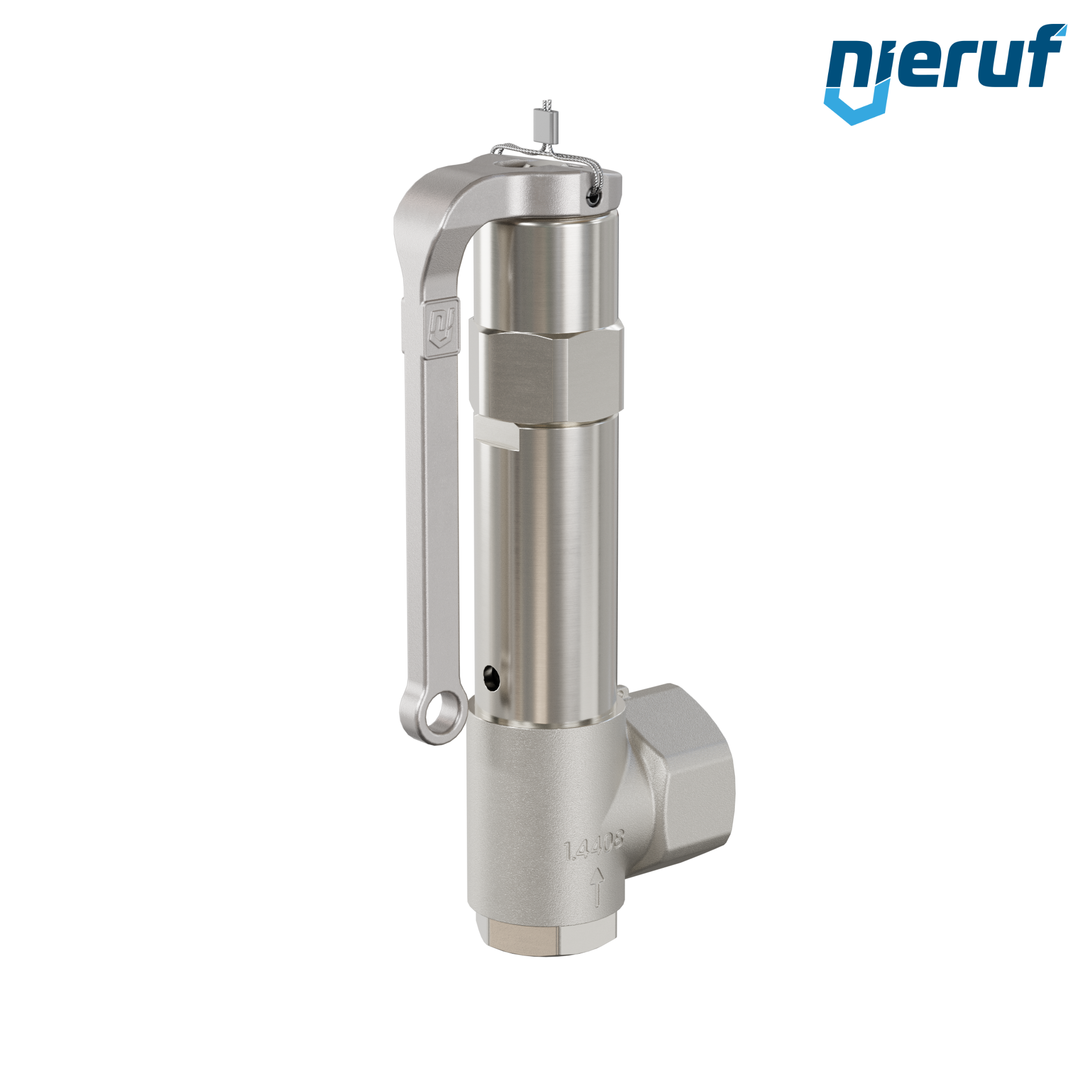 Eck-Sicherheitsventil FKM 1/2" x 1" IG Edelstahl Typ SV06 mit Innengewinde BSP-P für flüssige Medien aus Edelstahl mit Hebel und Faltenbalg
