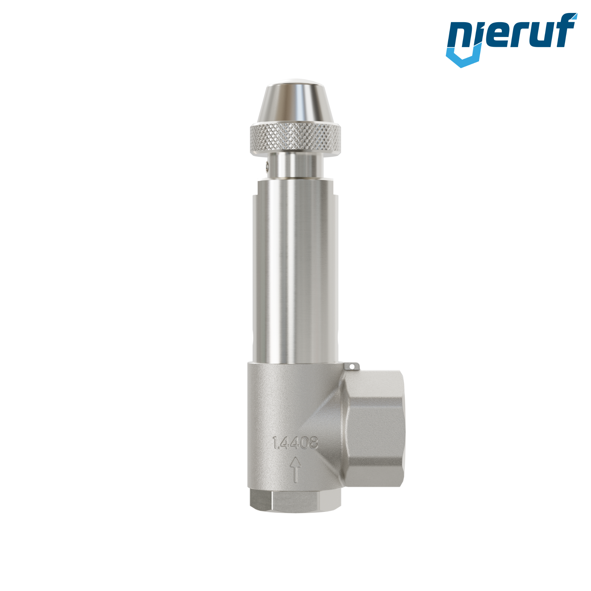 Edelstahl-Sicherheitsventil 1/2" x 1" IG Typ SV06 mit Innengewinde BSP-P FKM-Dichtung für flüssige Medien aus Edelstahl mit Drehanlüftung und Faltenbalg