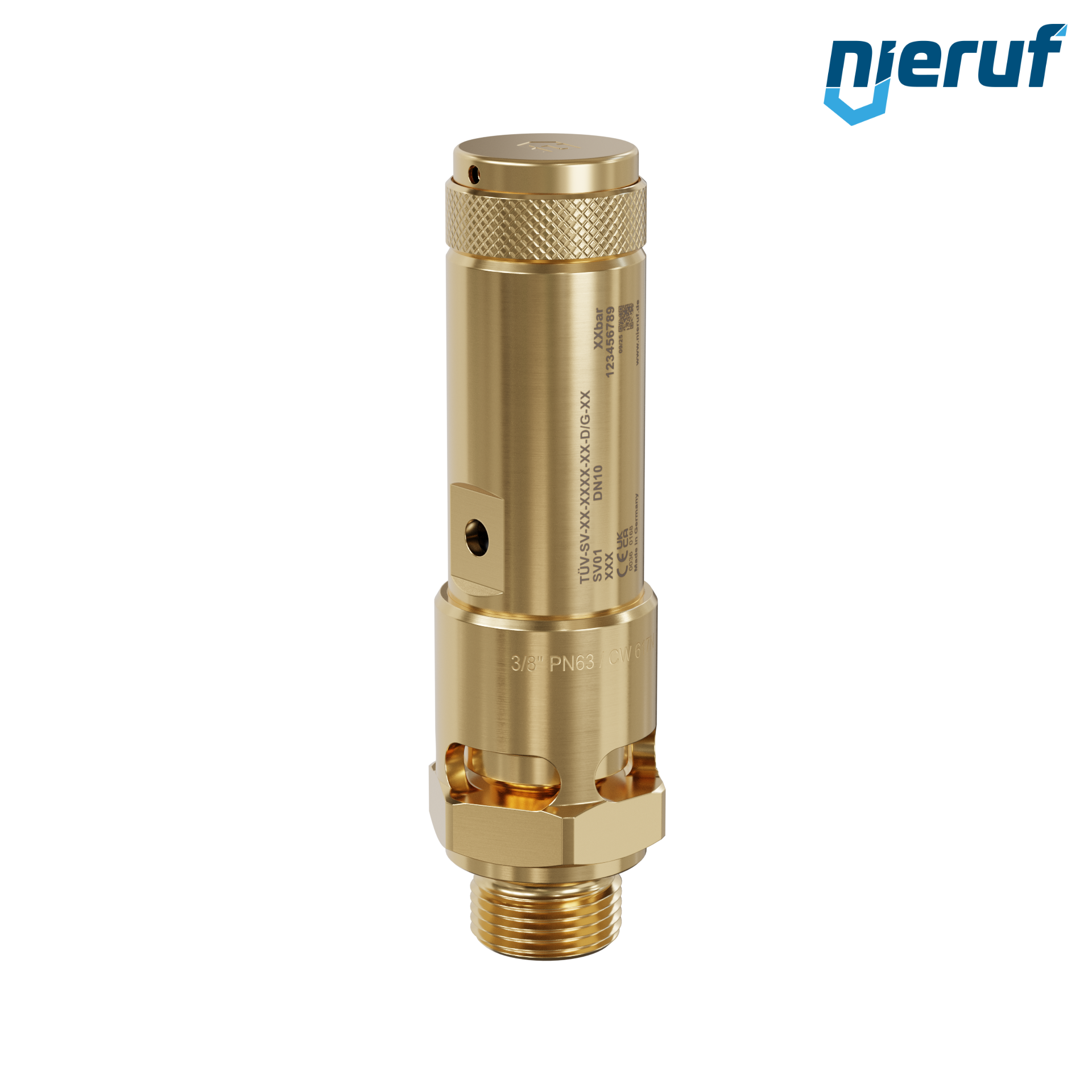 Sicherheitsventil 3/8" AG Typ SV01 freiabblasend für Druckluft & Pneumatikanwendungen, aus Messing mit FKM Dichtung, Einstelldruck 0,2 - 25,0 bar- höhere Drücke in PTFE Ausführung möglich