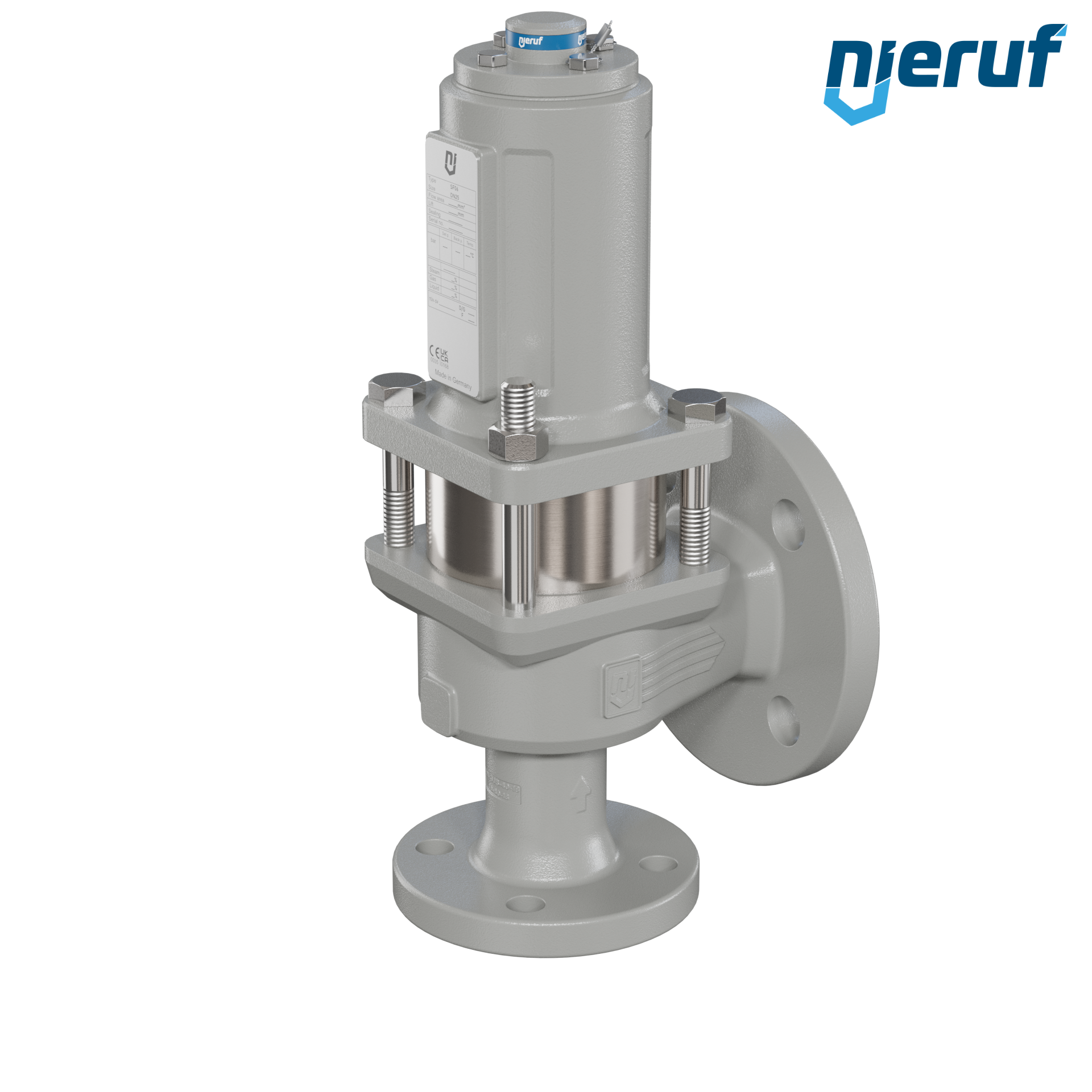 Flansch-Sicherheitsventil DN25/DN40 SF06, gasdichte Federhaube & Edelstahl Faltenbalg metall, ohne Anlüftung