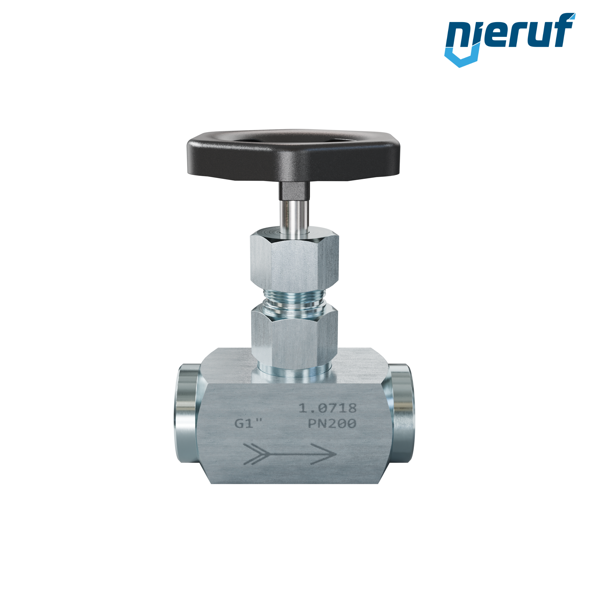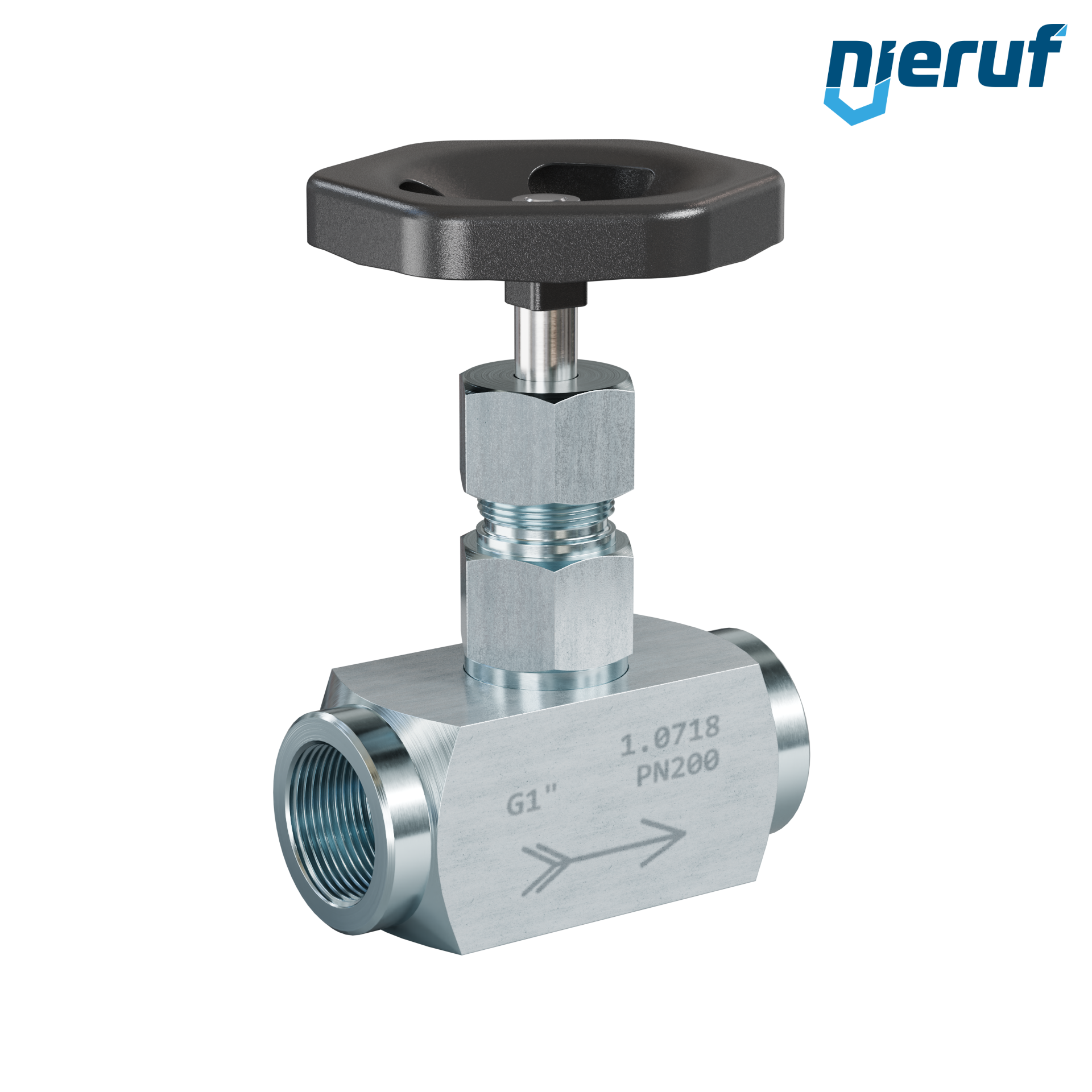 Nadelventil 1" Zoll Blockausführung mit Innengewinde aus Stahl (blau verzinkt) für flüssige & gasförmige Medien Druck bis max. 200 bar