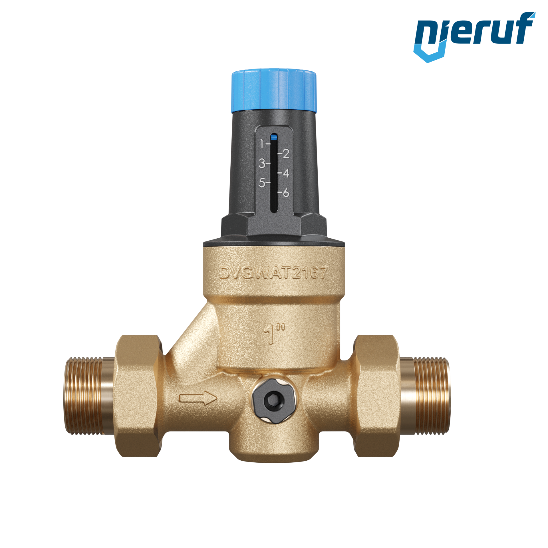 Trinkwasser-Druckminderer 1" Zoll Aussengewinde aus Messing Dichtung NBR für Trinkwasser, Einstelldruck 1,5 - 6,0 bar