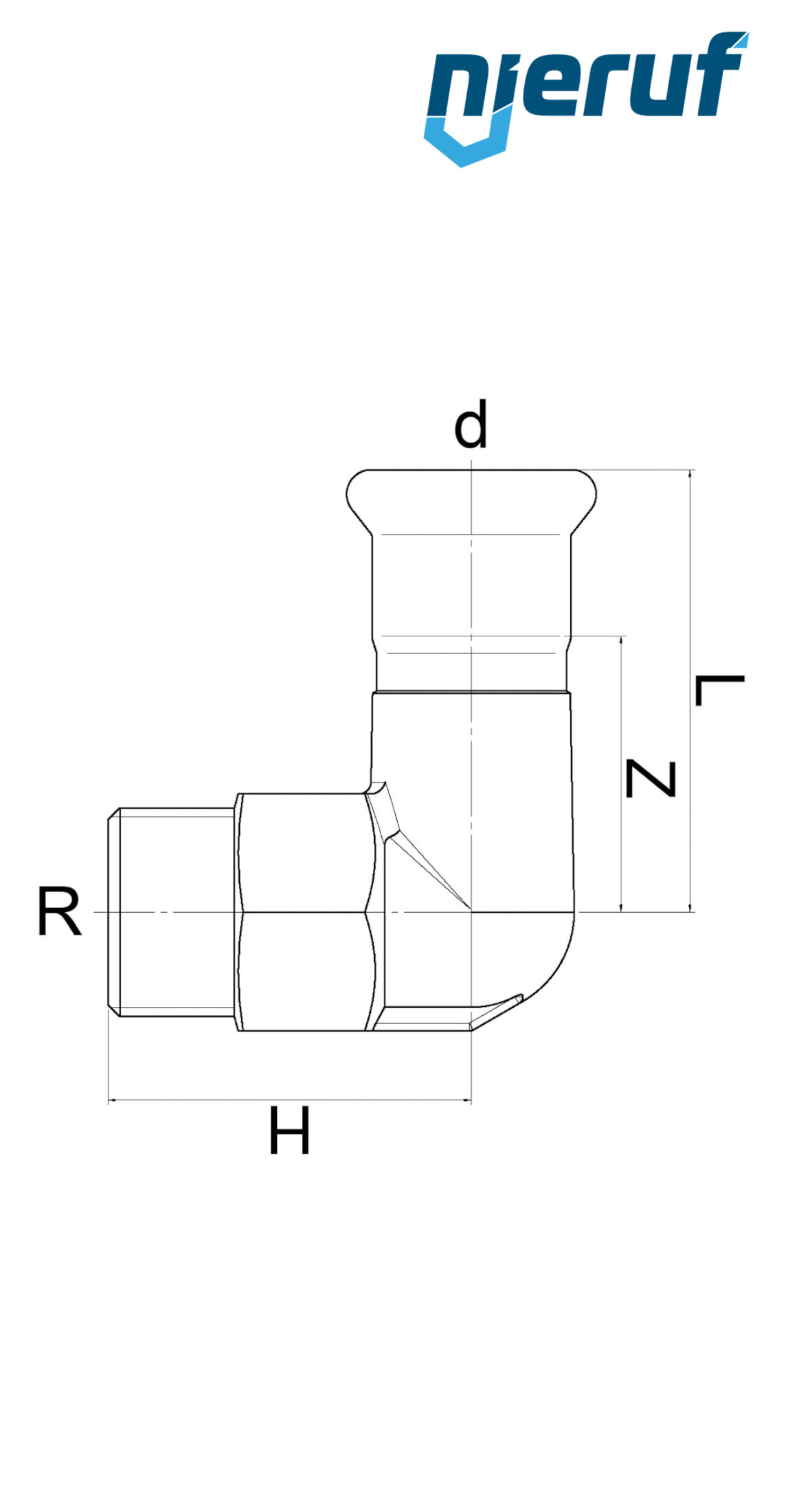 Übergangswinkel 90° PF01-05-02 mit Pressanschluss I DN15 - 18,0 mm, Aussengewinde 1/2" Zoll aus Edelstahl für flüssige & gasförmige Medien