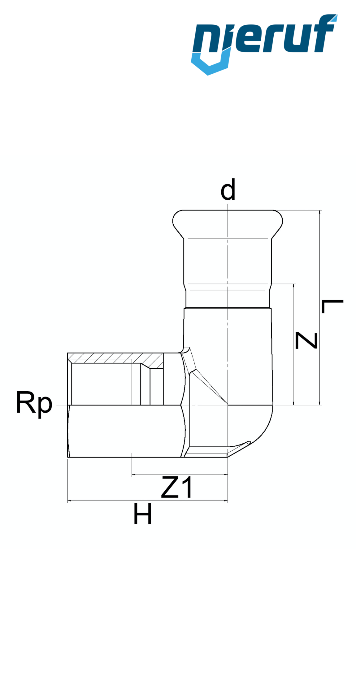 Übergangswinkel 90° PF01-05-03 mit Pressanschluss I DN20 - 22,0 mm, Innengewinde 3/4" Zoll aus Edelstahl für flüssige & gasförmige Medien