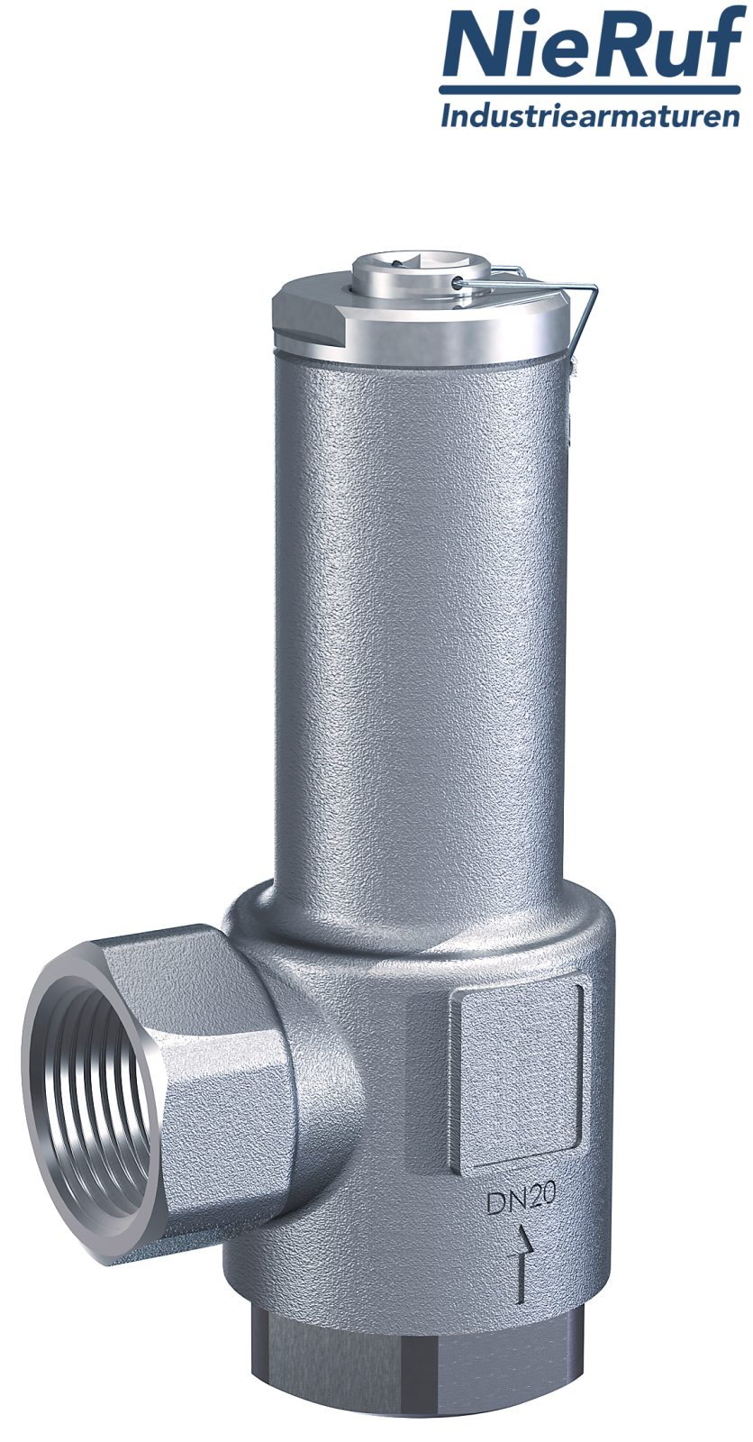 Eck-Überströmventil 1 1/2" Zoll IG Typ UV04 aus Edelstahl Einstellbereich 12,0 - 20,0 bar Dichtung PTFE für flüssige und gasförmige Medien