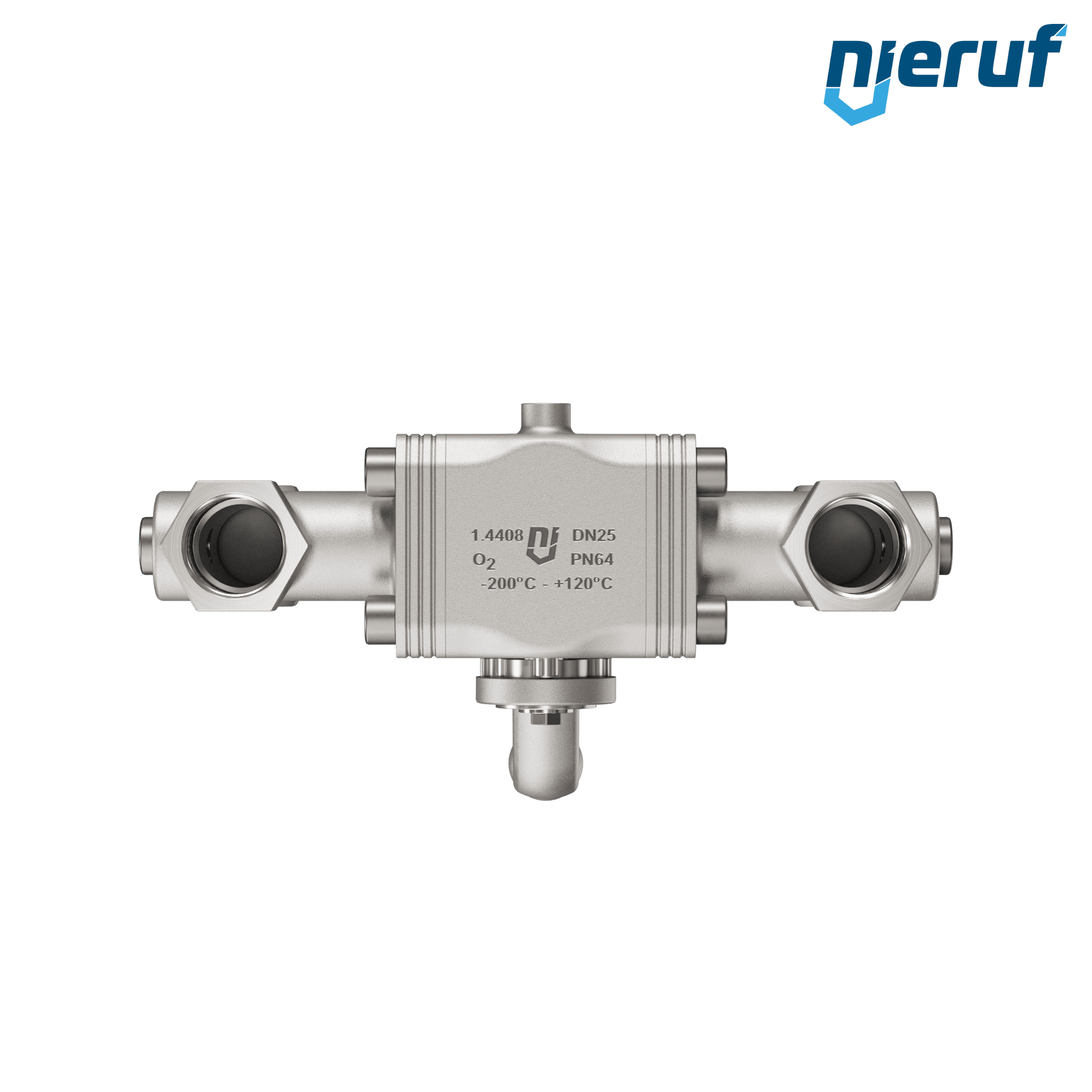Produktmerkmale: Wechselkugelhahn mit Gewindeanschluss aus Edelstahl für den Aufbau von zwei Sicherheitsventilen zur Absicherung von Behältern für die Lagerung von tiefkalten verflüssigten Gasen. Mit T-Bohrung.