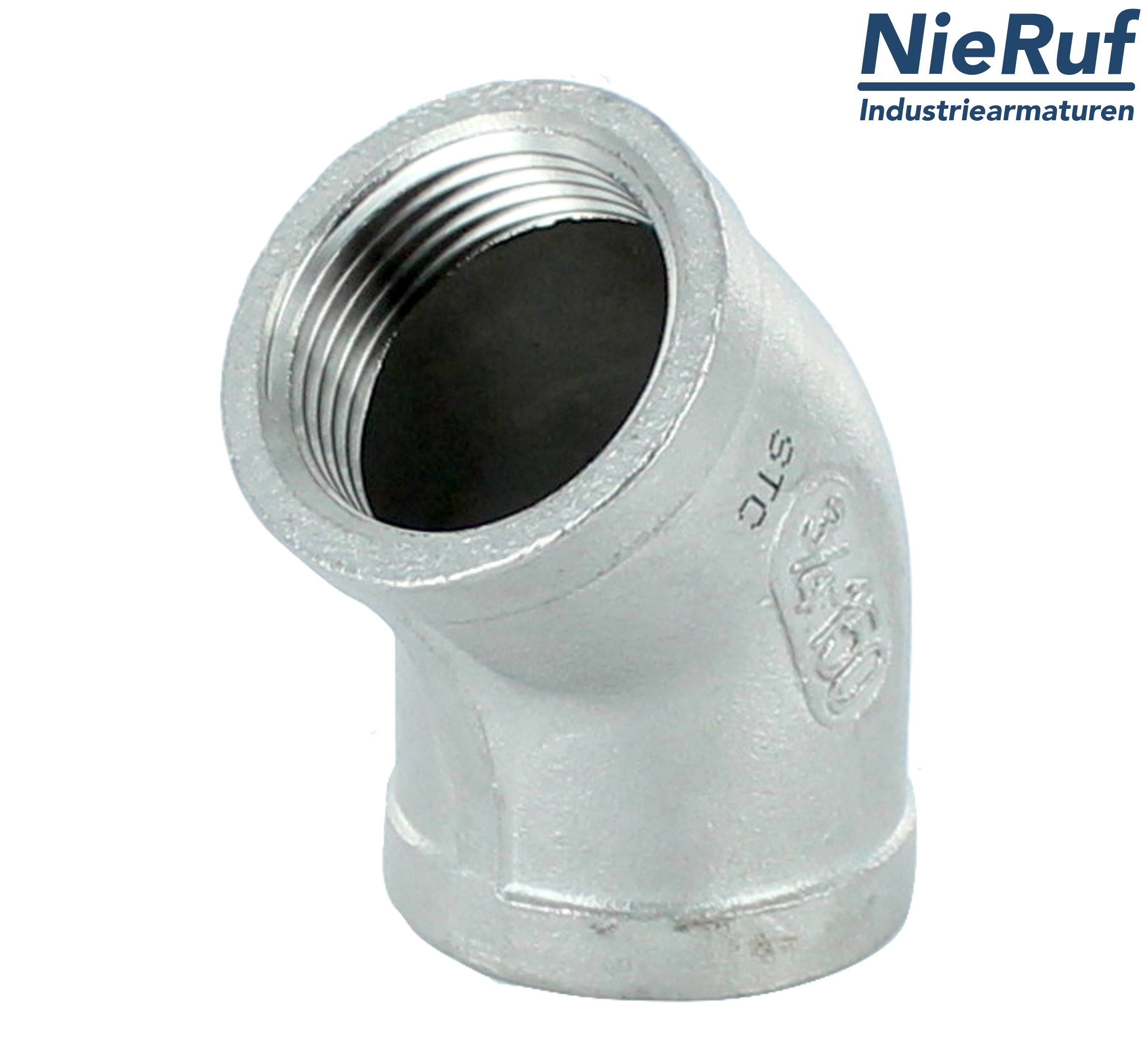 Winkel GF01-0 mit Innengewinde 3/8" Zoll aus Edelstahl 316 im 45° Winkel für flüssige & gasförmige Medien