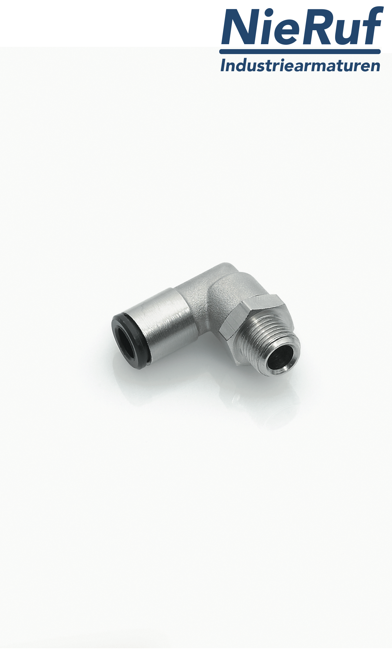 Produktmerkmal Winkelverschraubung zur Verbindung oder zum Anschluss von Schläuchen bei Pneumatik- und Druckluftanwendungen.