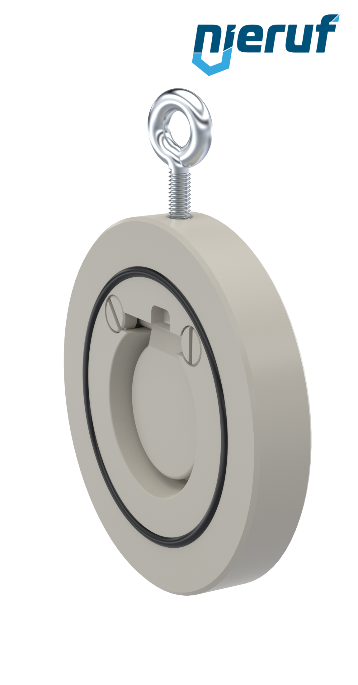 Zwischenflansch-Rückschlagklappe DN40 PN 10/16 DIN EN 1092-1 Form B aus Kunststoff PP-H Dichtung FKM (Viton) für flüssige und gasförmige Medien