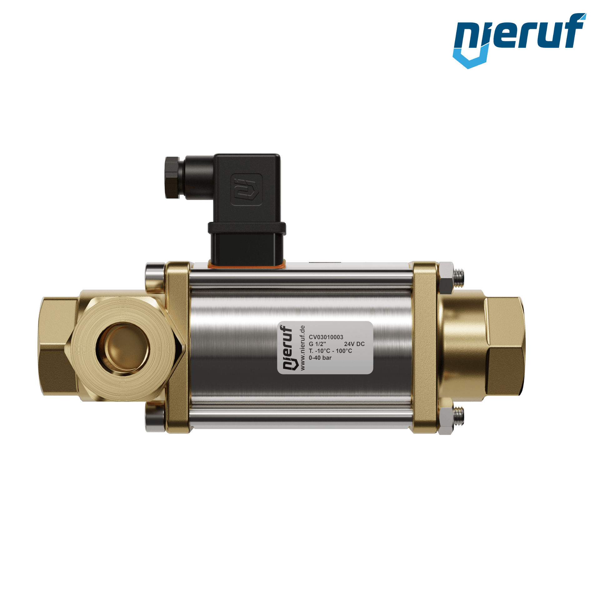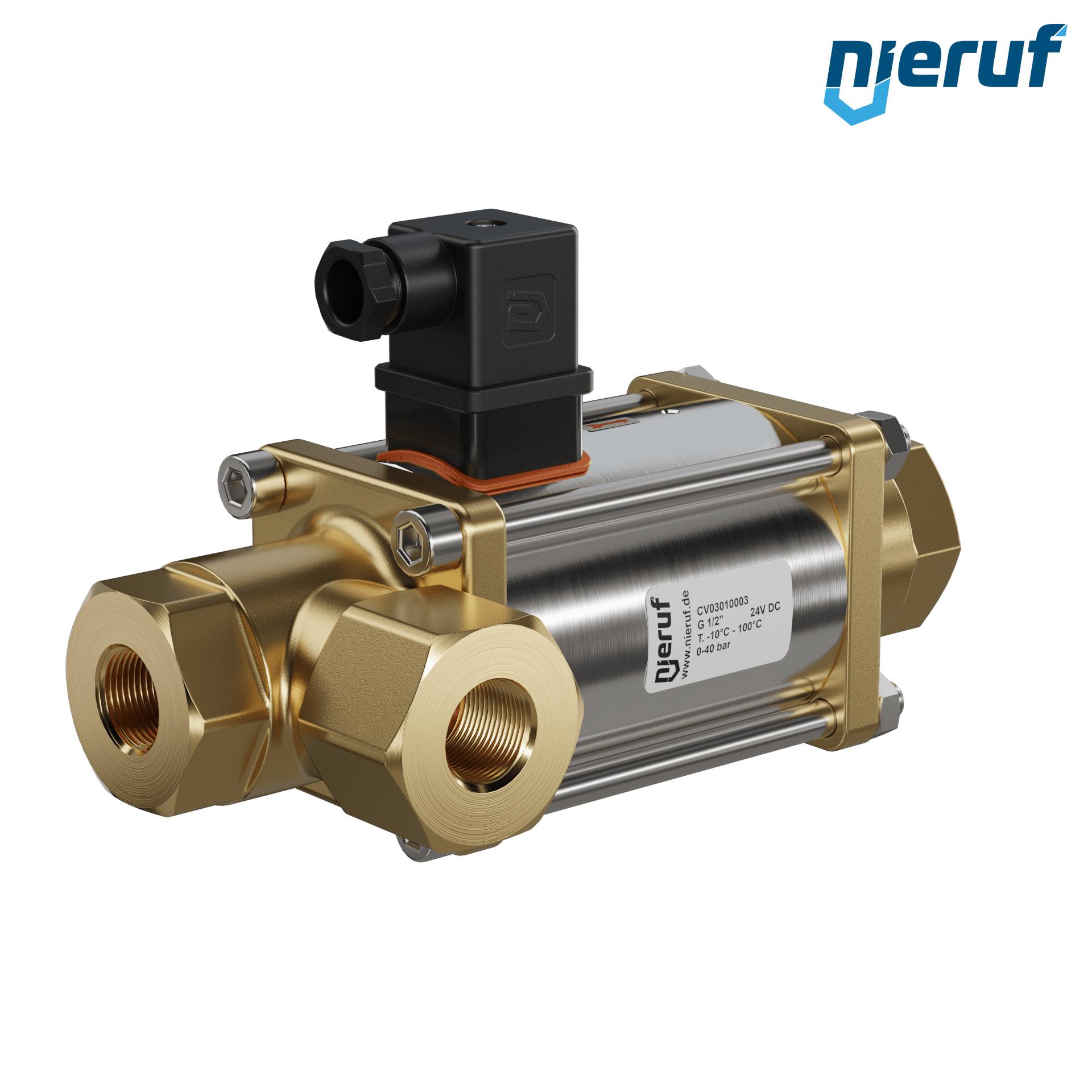 3/2 Wege-ventil Coaxial-Ventil 1/2" Zoll IG - DN15 aus Messing, direktgesteuert bis max. 40 bar, NC - stromlos geschlossen Spannung 24V DC