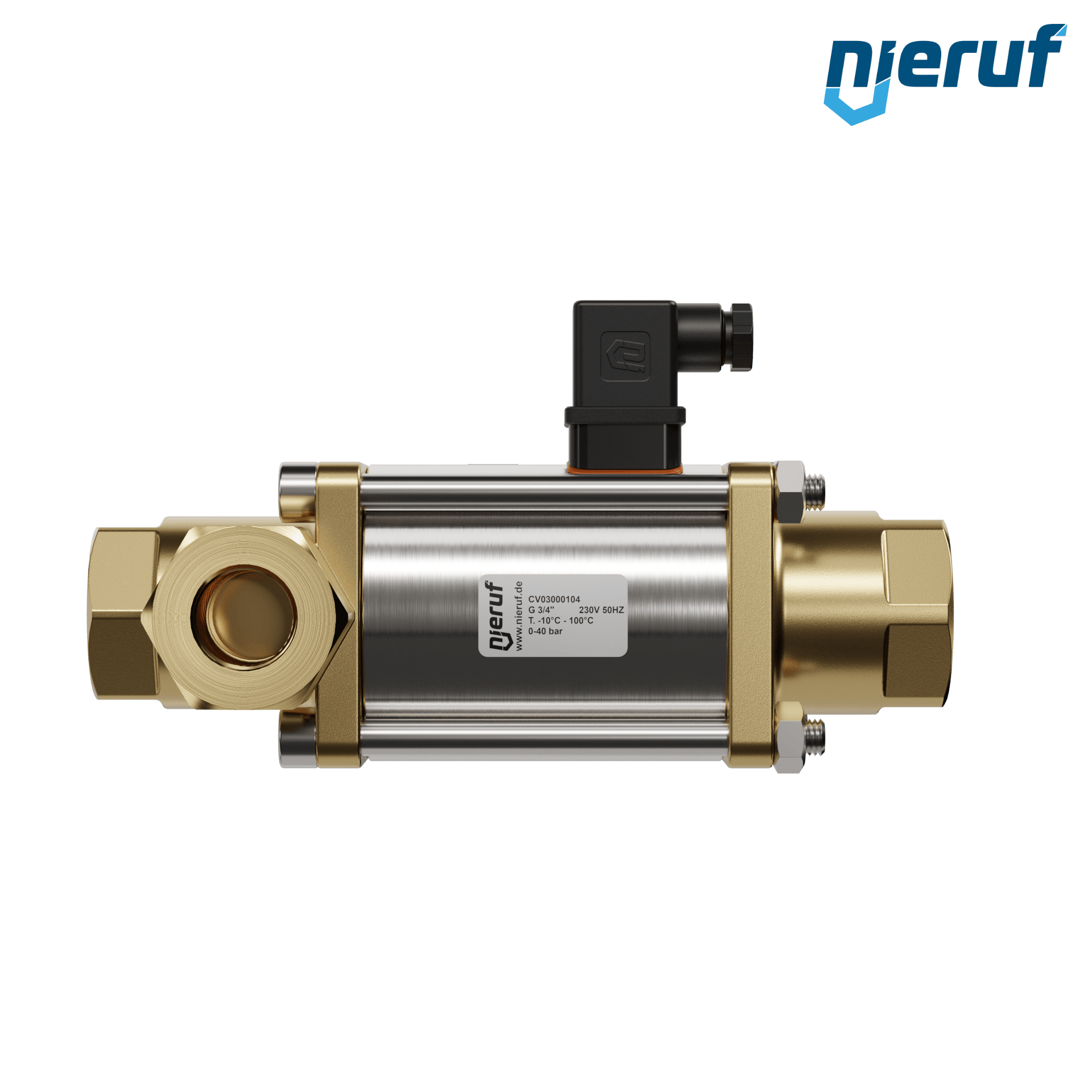 3/2 Wege-ventil Coaxial-Ventil 3/4" Zoll IG - DN20 aus Messing, direktgesteuert bis max. 40 bar, NO - stromlos offen Spannung 230V AC