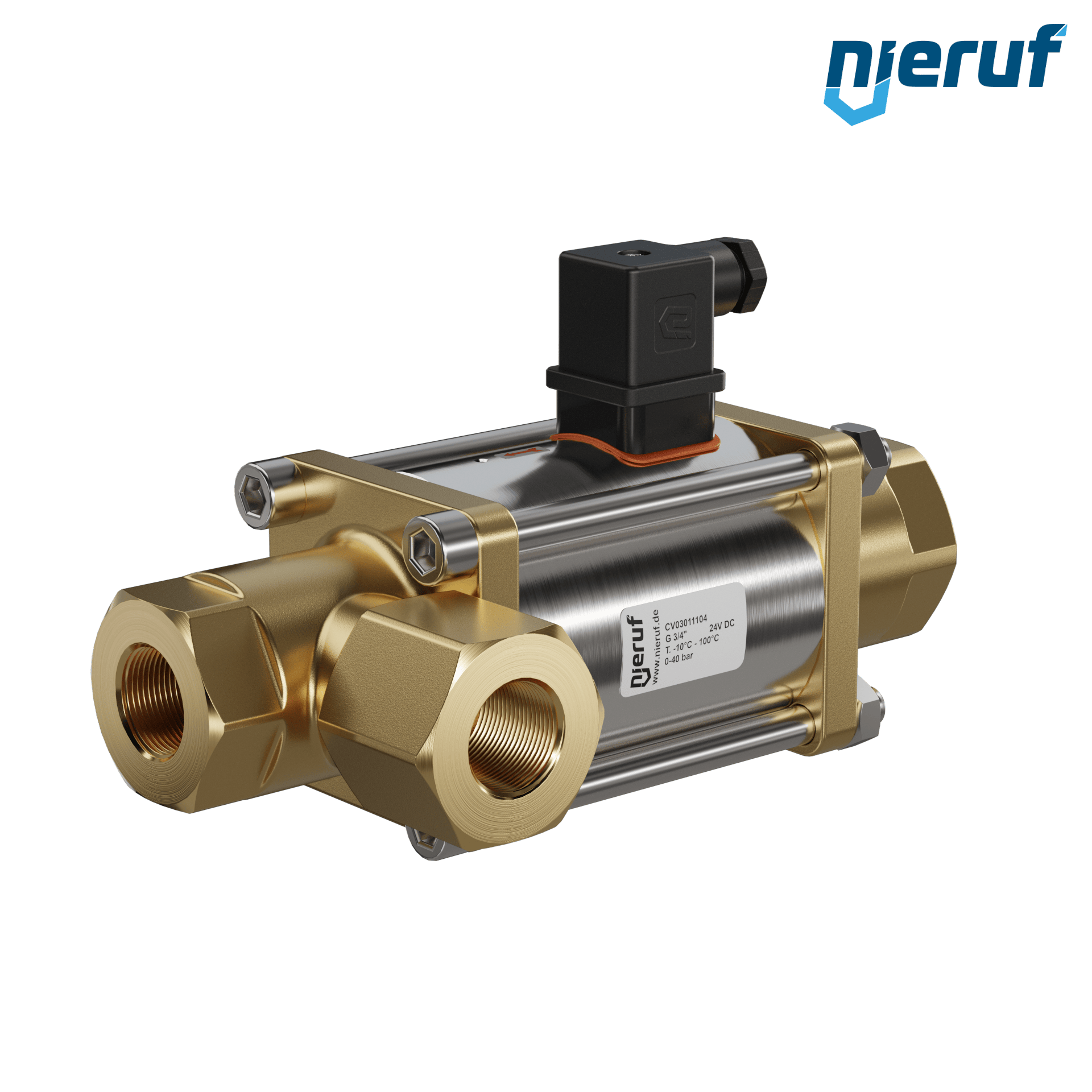 3/2 Wege-ventil Coaxial-Ventil 3/4" Zoll IG - DN20 aus Messing, direktgesteuert bis max. 40 bar, NO - stromlos offen Spannung 24V DC - für Wasser