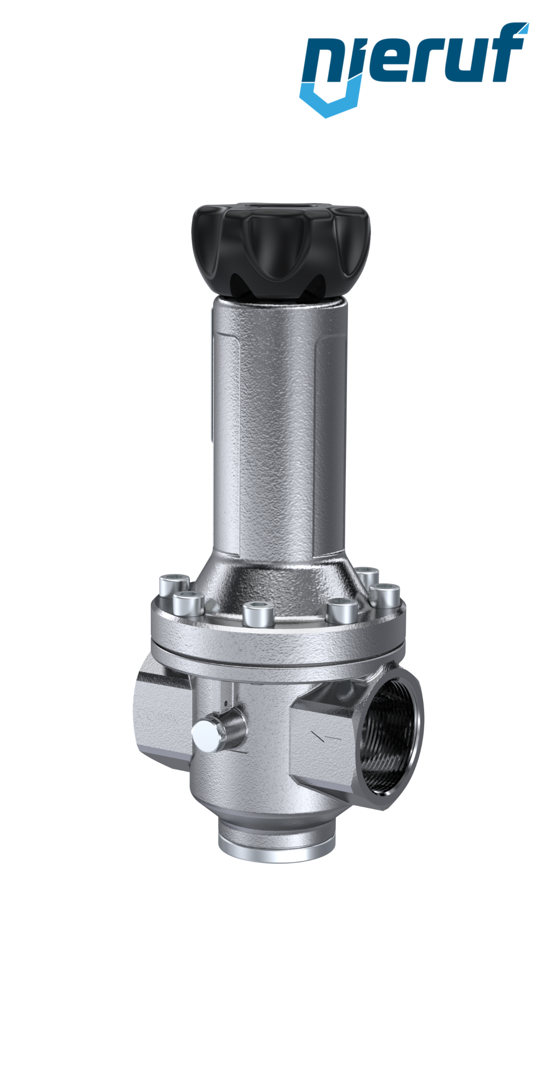 Membran Präzisions-Druckminderer mit Sekundärentlüftung. Druckverstellung über nicht steigende Spindel und integriertem Manometeranschluss 1/4"